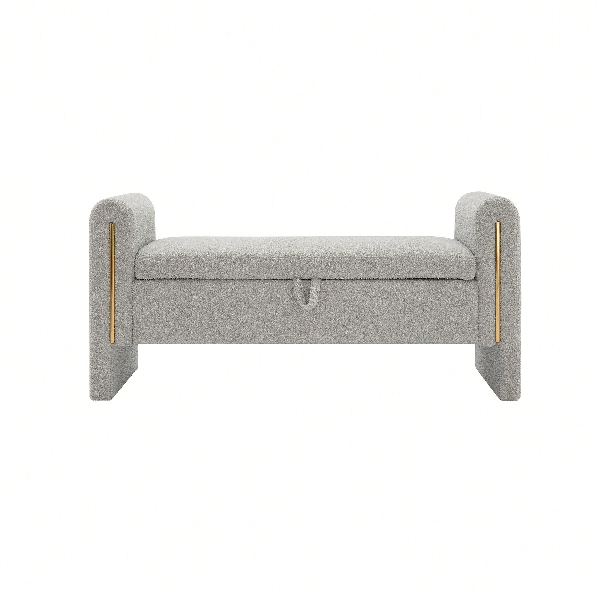 Cozy Upholstered Bed End Bench With Storage And Arms For Living Room Bedroom Dorm Stylish Teddy Grey Footrest And Vanity Stool
