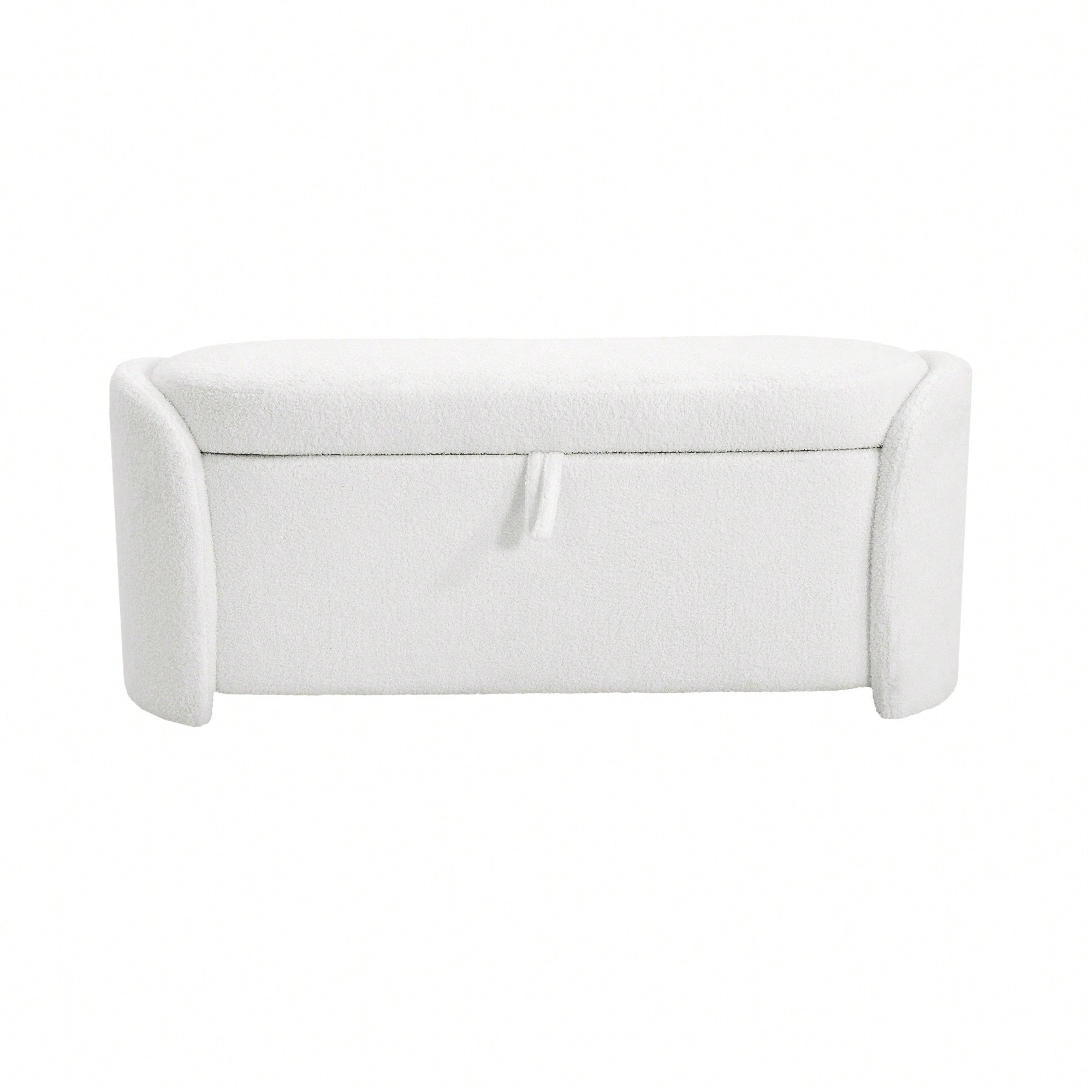 Upholstered Sherpa Fabric Storage Bench Large Ottoman For Bedroom Living Room Entryway Beige Toy And Shoe Organizer