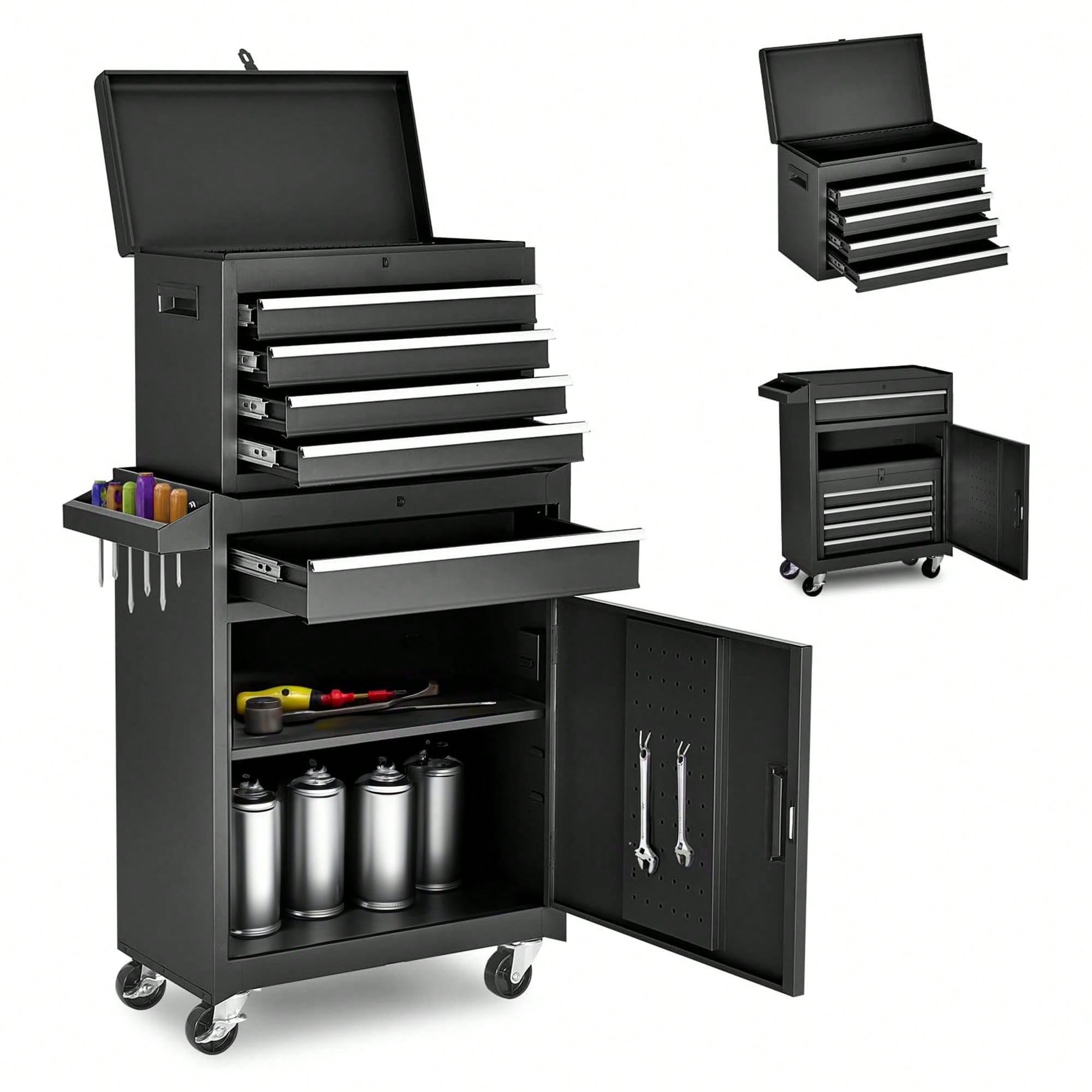 5-Drawer Rolling Tool Storage Cabinet With Detachable Top Box, Lockable Wheels, Adjustable Shelf, And Metal Construction For Garage And Workshop Organization