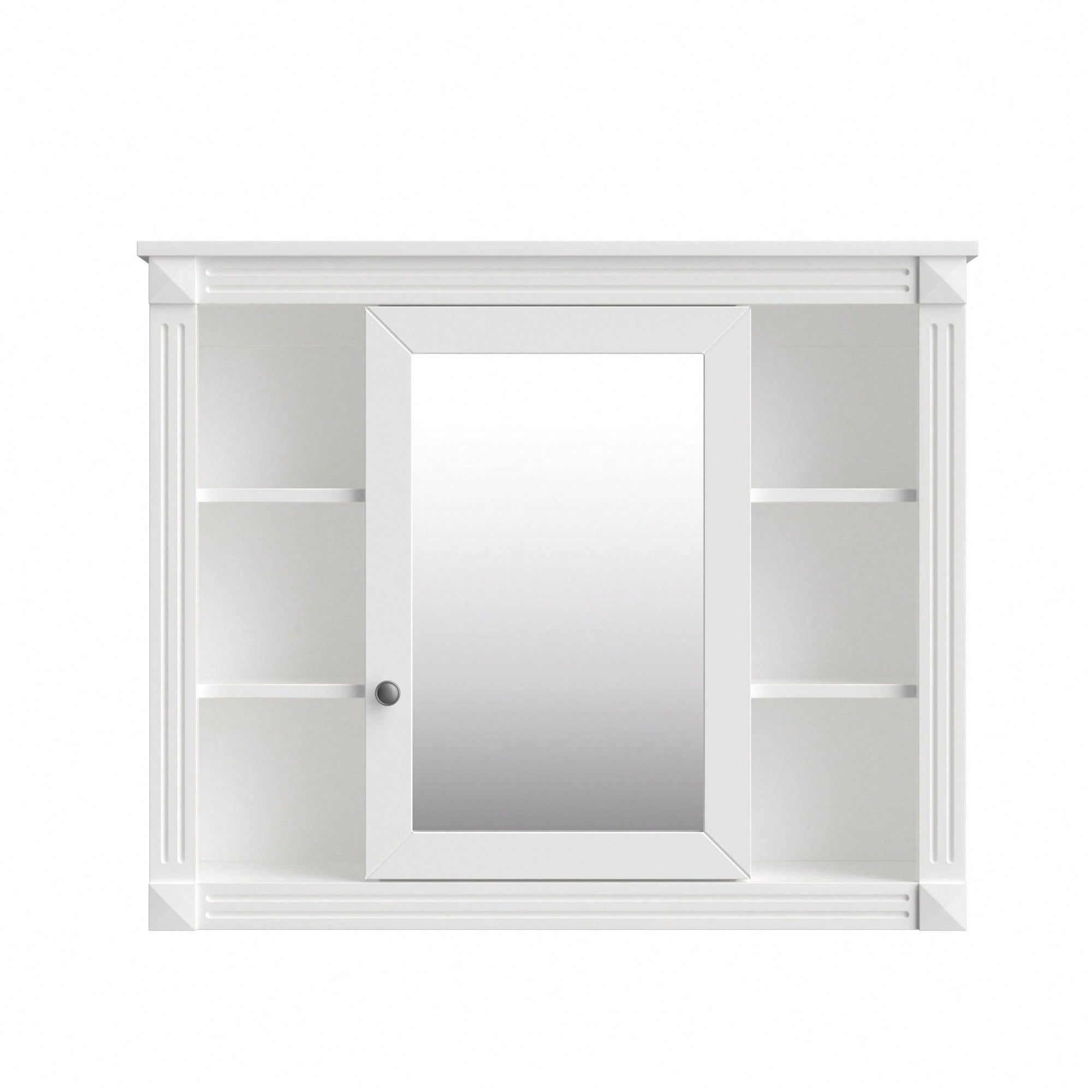 35'' X 28'' Wall Mounted Bathroom Storage Cabinet, Modern Bathroom Wall Cabinet With Mirror, Mirror Cabinet With 6 Open Shelves