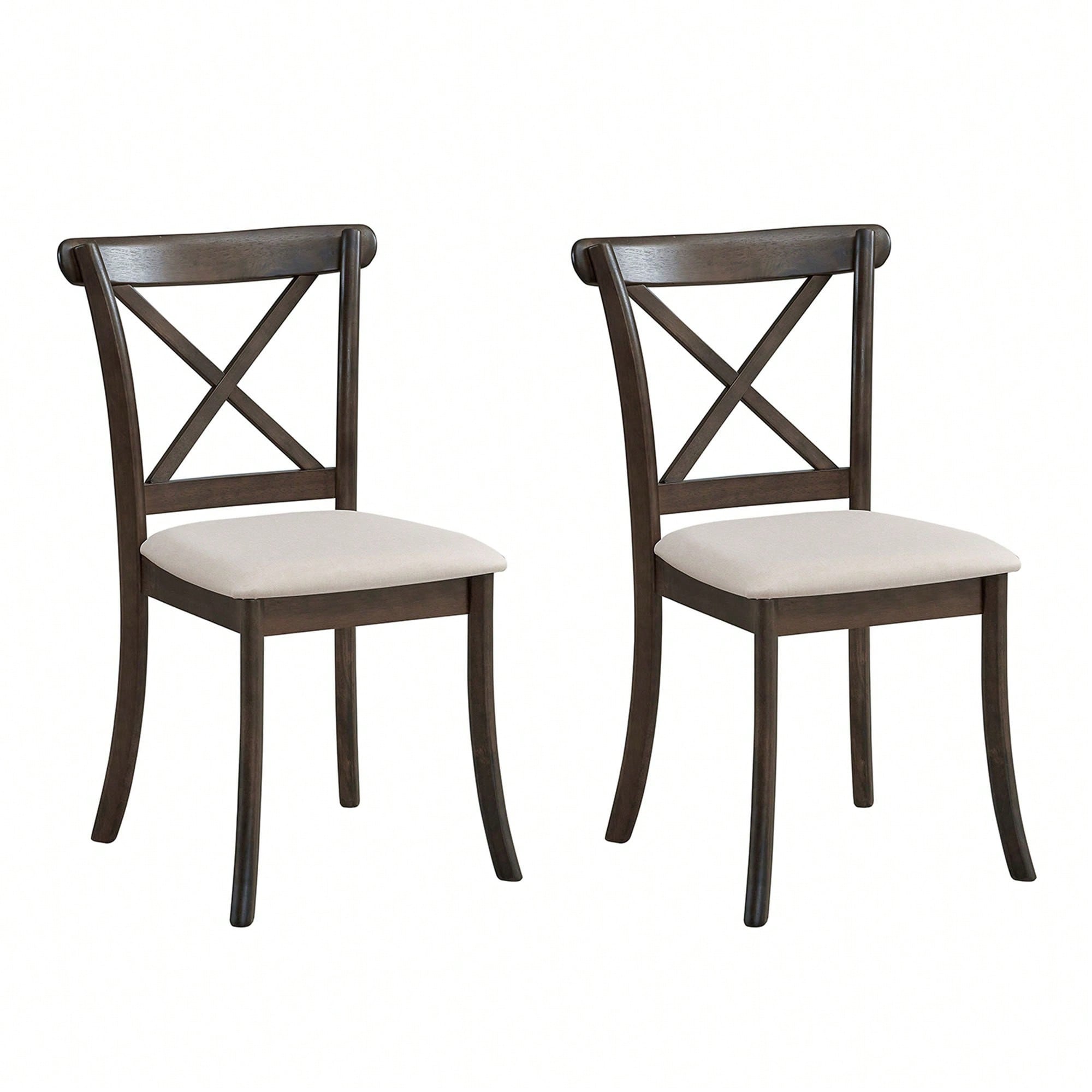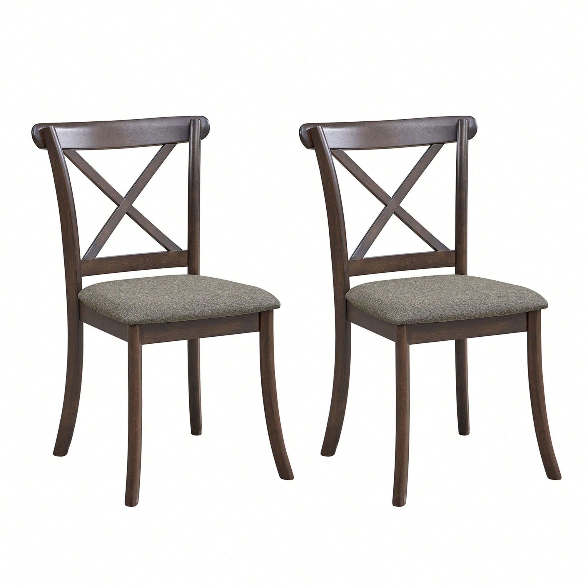 Modern Fabric Upholstered X Back Dining Chairs Set Of 2, Rubber Wood Farmhouse Style Kitchen Side Chairs In Oak Finish