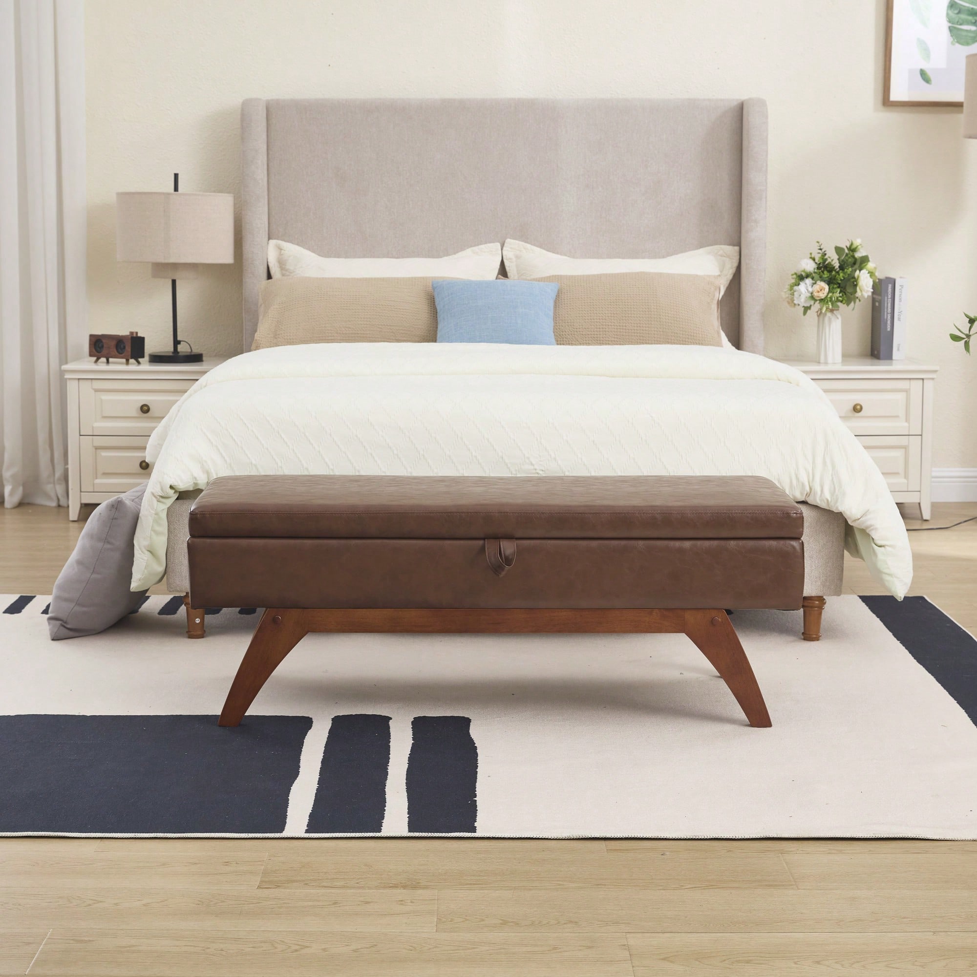 Teddy Wool Upholstered Bed End Stool With Storage And Solid Wood Legs
