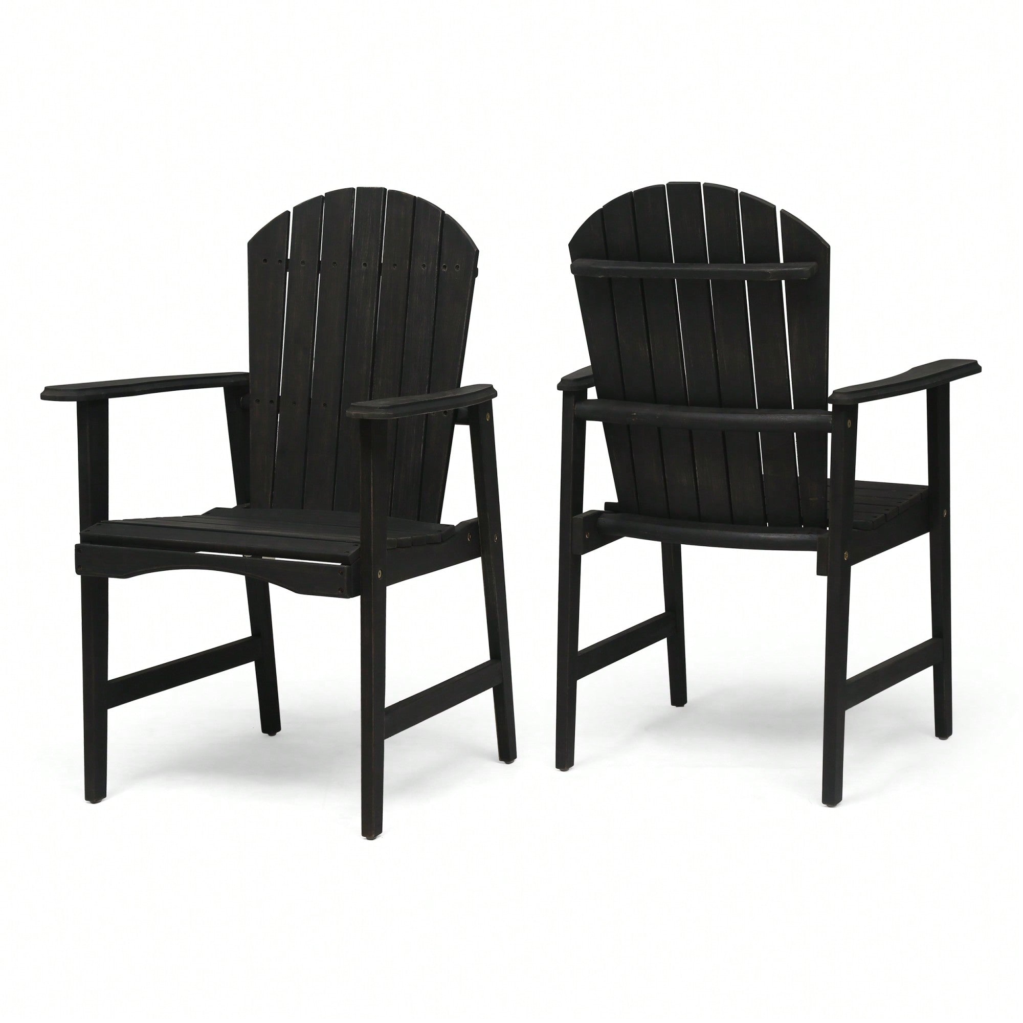 Set Of 2 Outdoor Weather-Resistant Dark Gray Acacia Wood Adirondack Dining Chairs