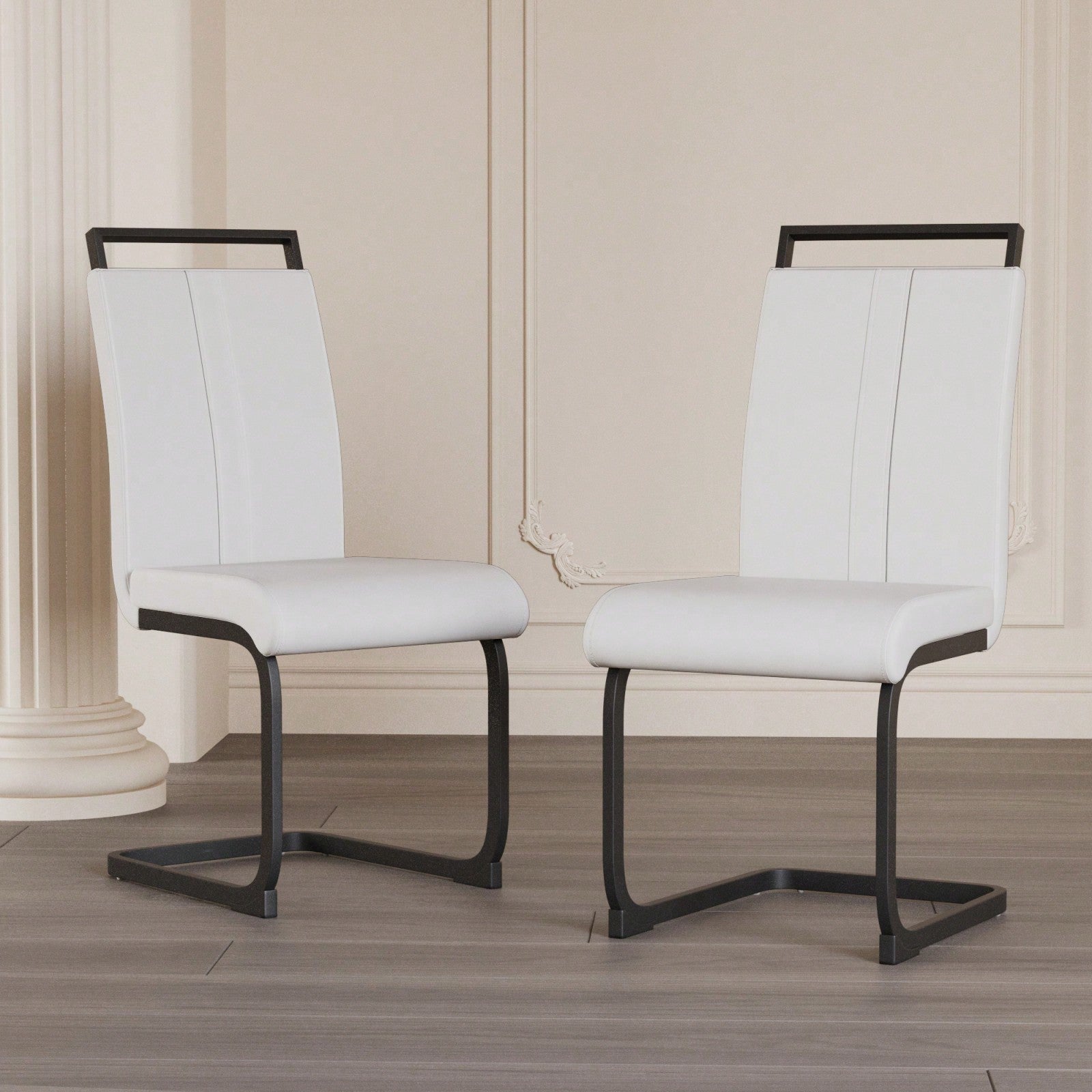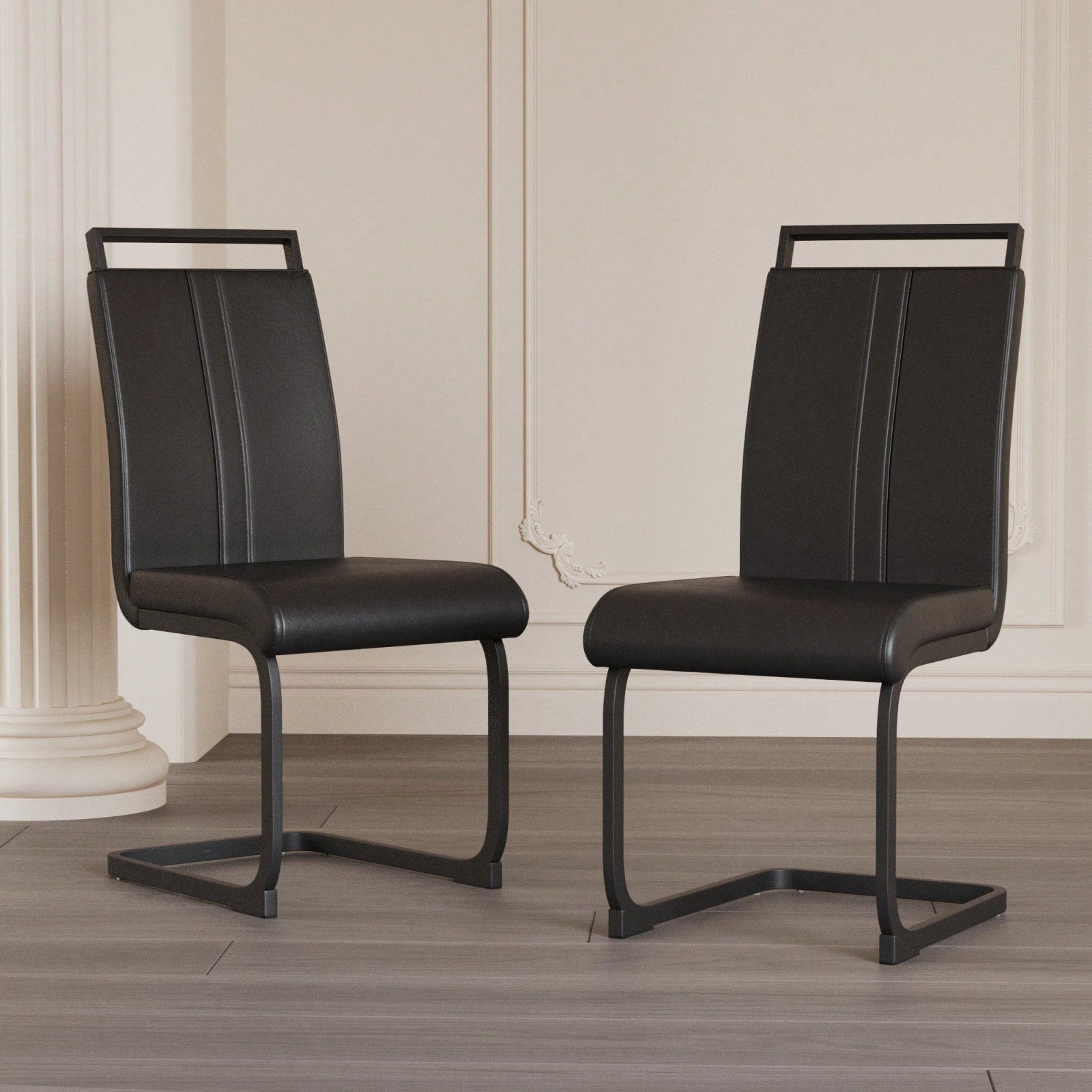 Set of 2 Modern PU Faux Leather High Back Dining Chairs with Black Metal Legs for Kitchen Office and Dining Room
