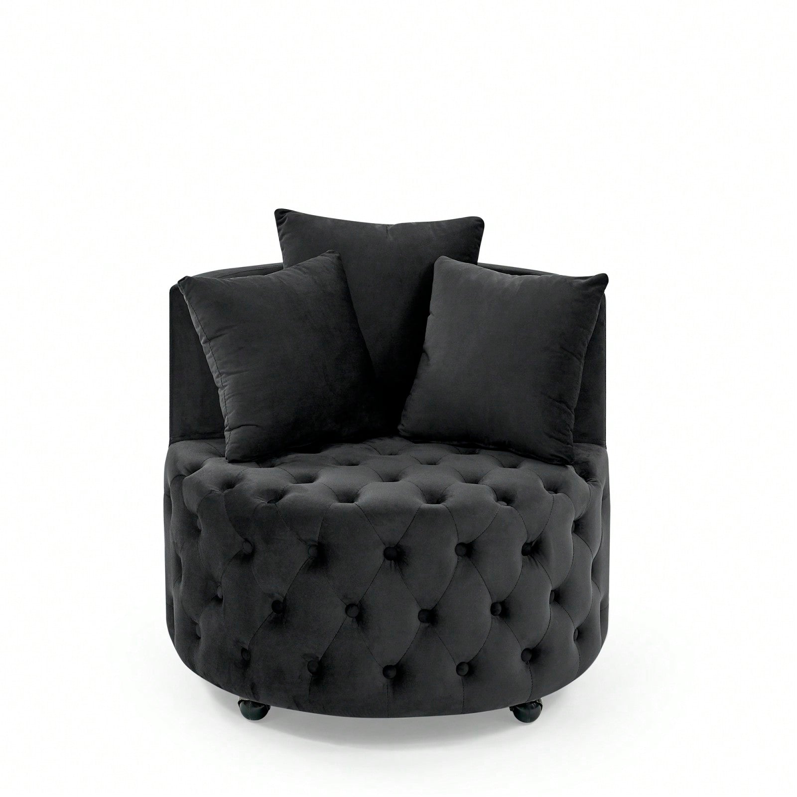 Velvet Swivel Accent Chair with Button Tufting and Wheels Comfortable Home Office Chair for Living Room Bedroom Includes 3 Pillows