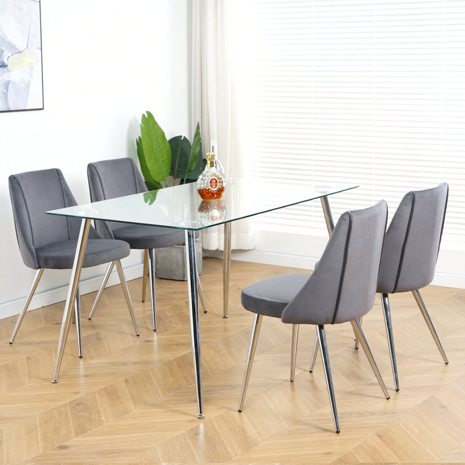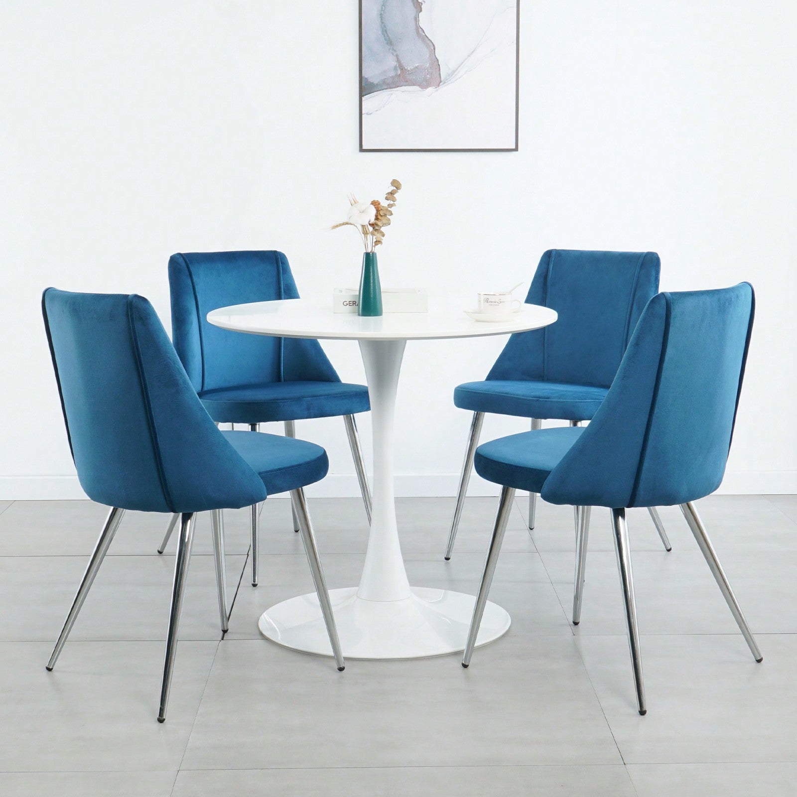 Set Of 4 Velvet Dining Chairs - Modern Upholstered Accent Chairs With Backrest And Chrome Legs - Comfortable Vanity, Bedroom, Or Desk Chairs