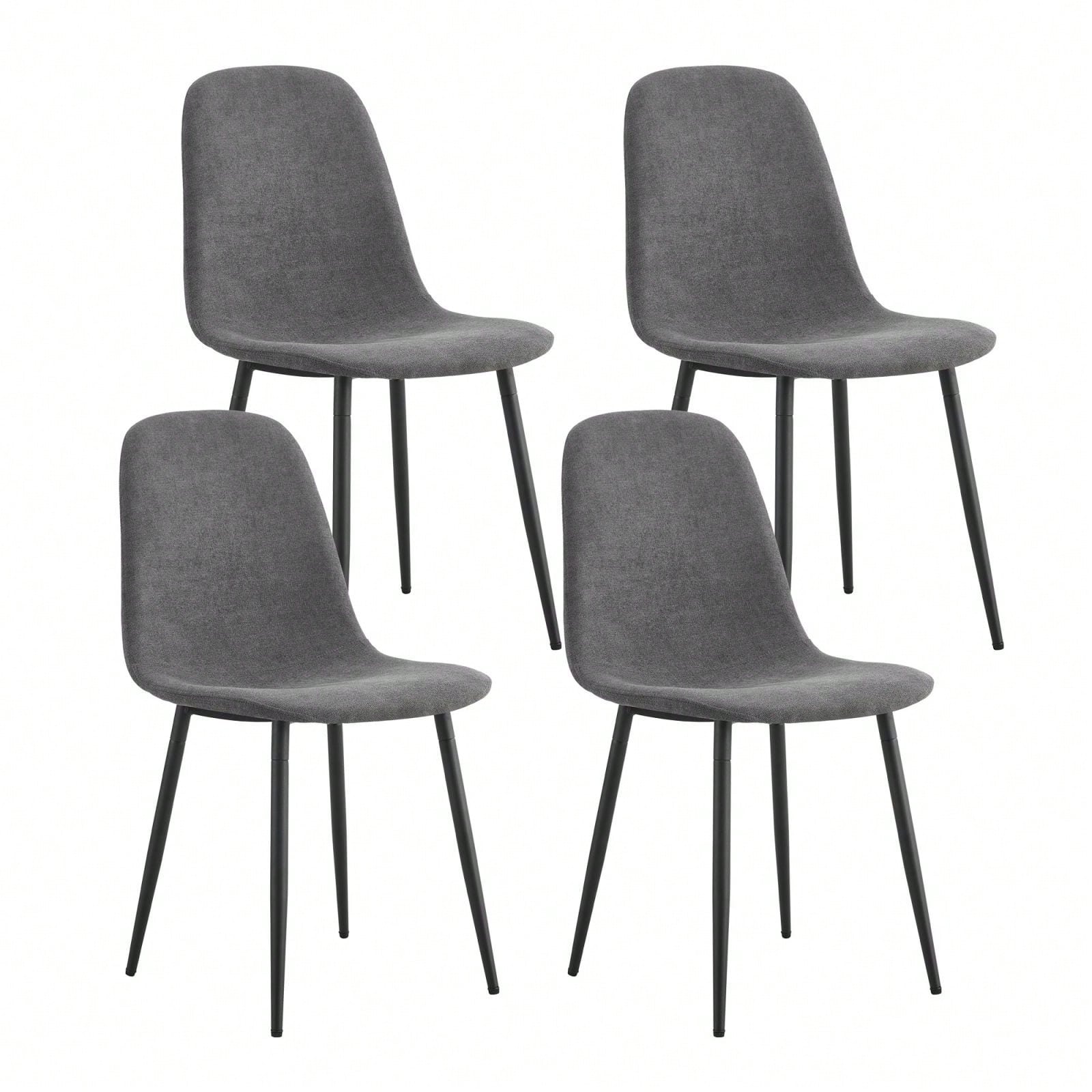 Modern Farmhouse Dining Chairs Set of 4 Upholstered Linen Fabric Side Chairs with Soft Cushions and Black Metal Legs for Kitchen and Lounge