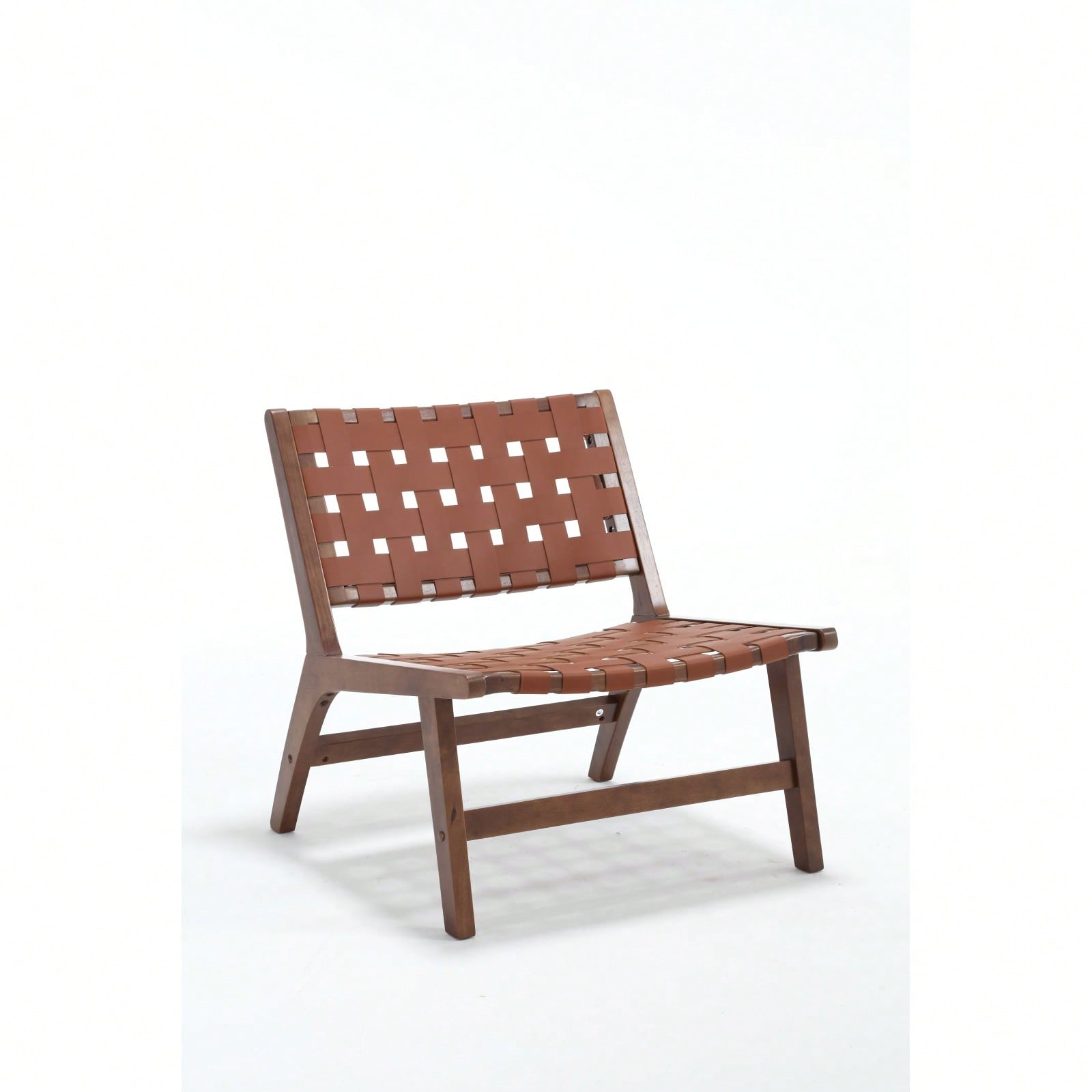 Saddle Leather Woven Leisure Chair, Solid Wood Legs, Suitable For Living Room, Study Or Balcony