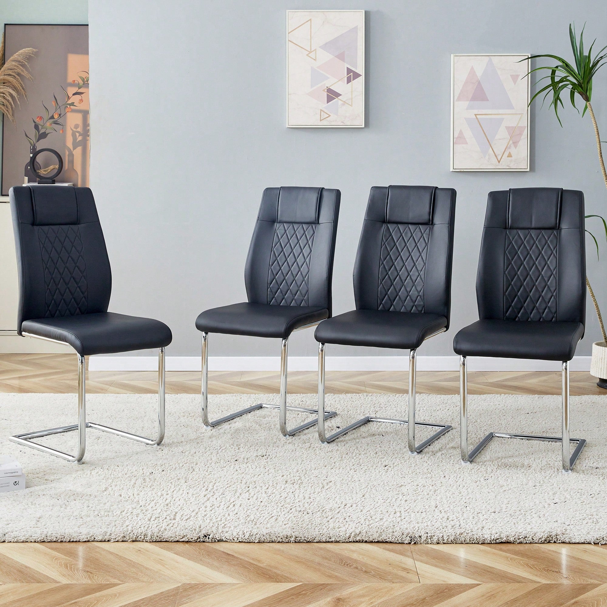 Set of 4 Modern Upholstered Faux Leather Dining Chairs with Metal Legs and Anti-Slip Footpads for Kitchen and Living Room