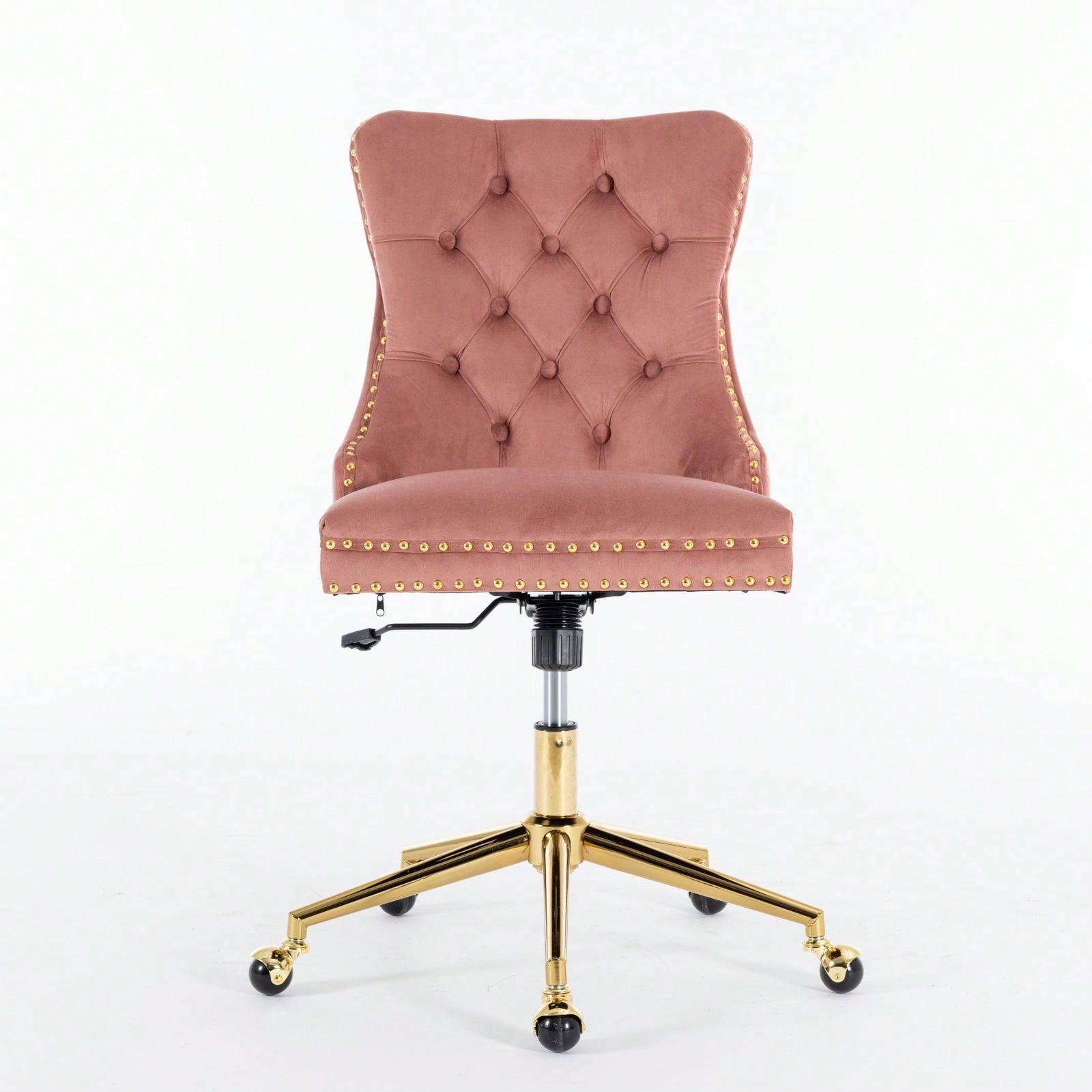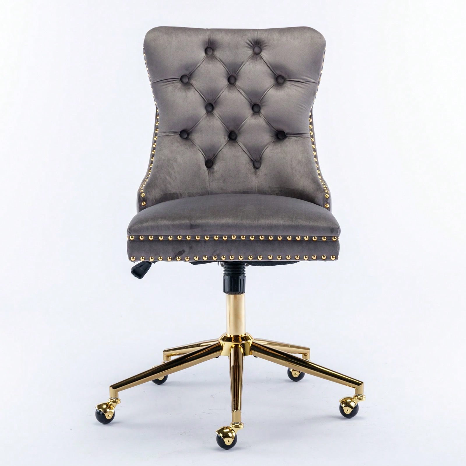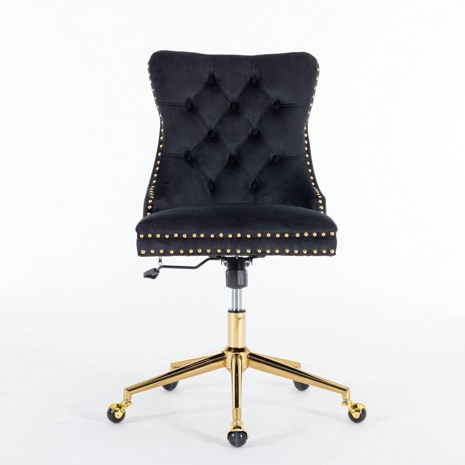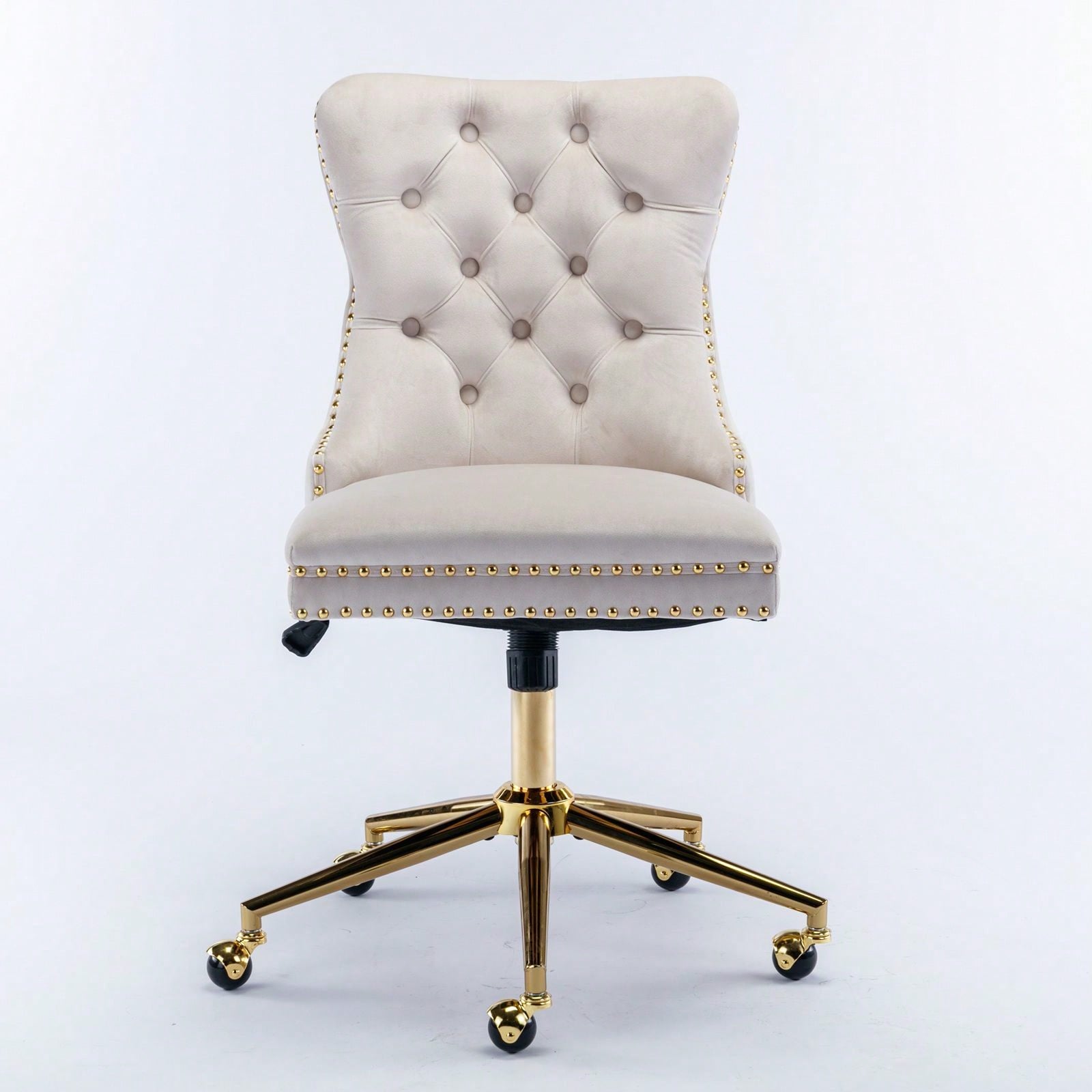 Premium Spring Cushioned Adjustable Desk Chair With Hand-Pulled Buttons And Golden Metal Base