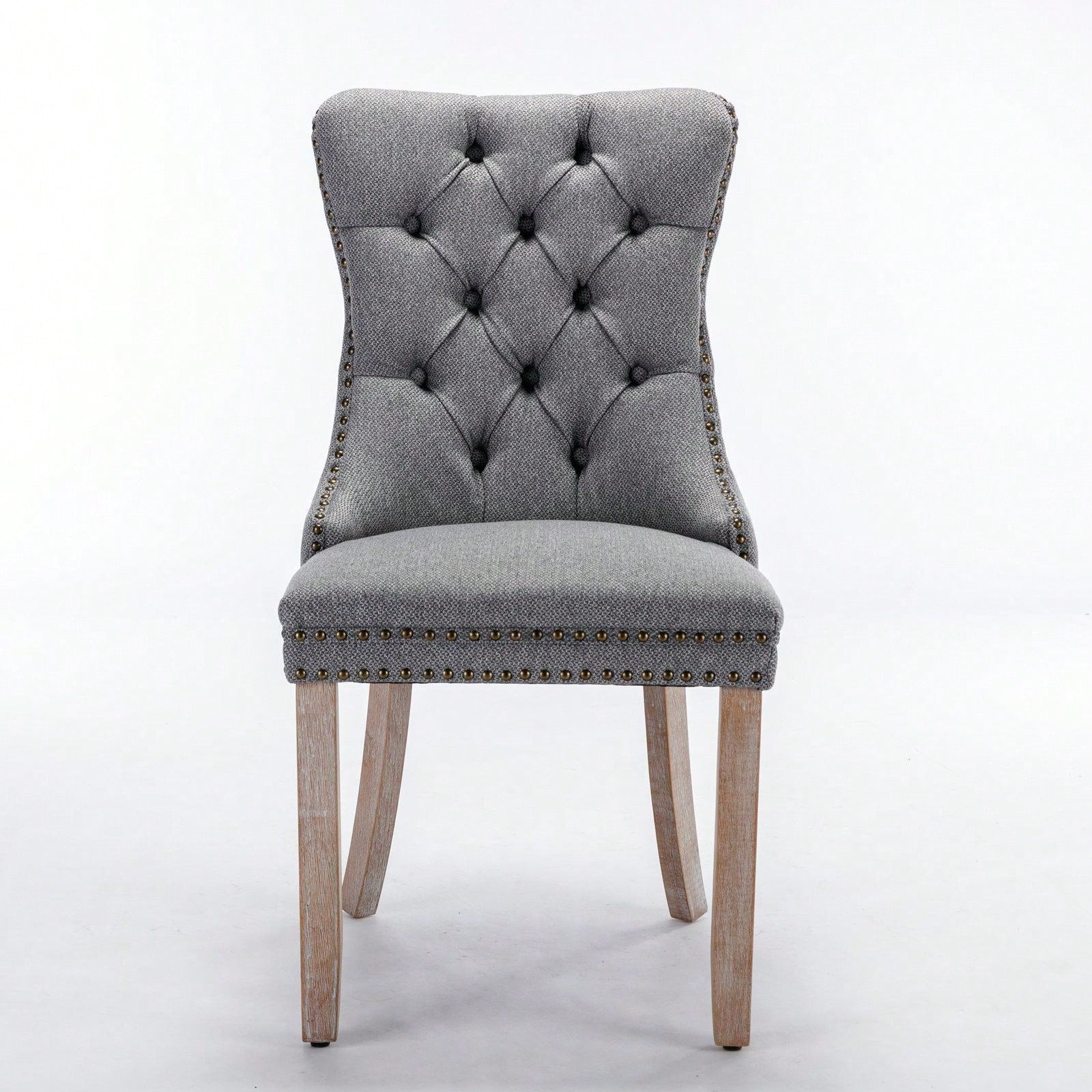 Set Of 2, Modern High-End Tufted Solid Wood Contemporary Flax Upholstered Dining Chair With Wood Legs Nailhead