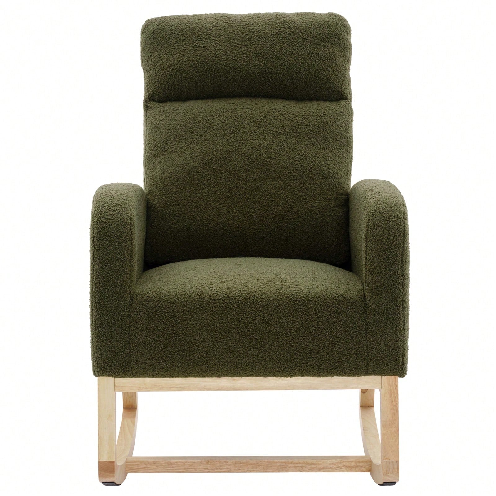 Ergonomic High Back Rocking Chair with Thick Cushioning and Side Pockets for Nursery Living Room Bedroom