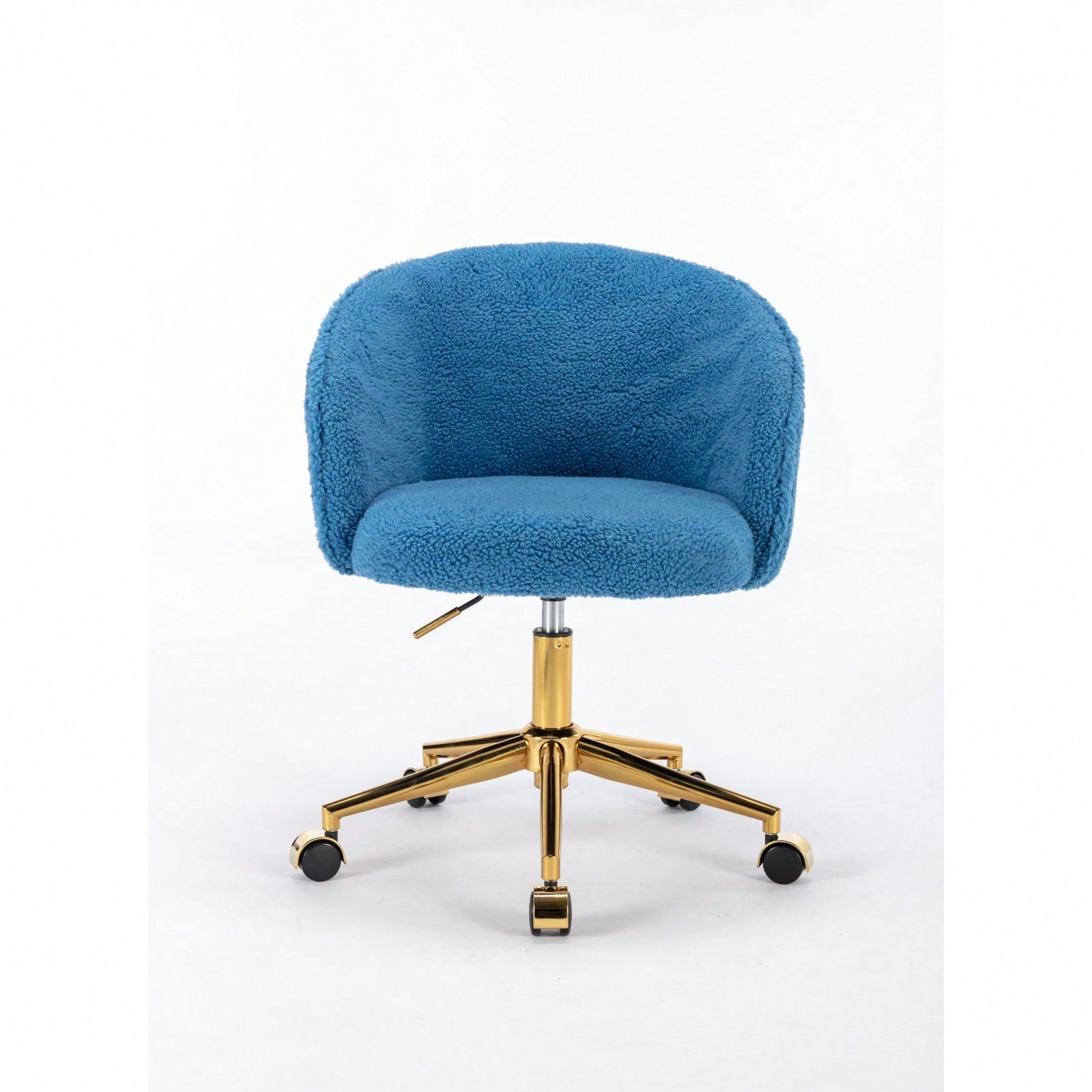 Height Adjustable Faux Fur Office Chair with Wheels Stylish Comfortable Armchair for Bedroom Vanity Supports 240lbs