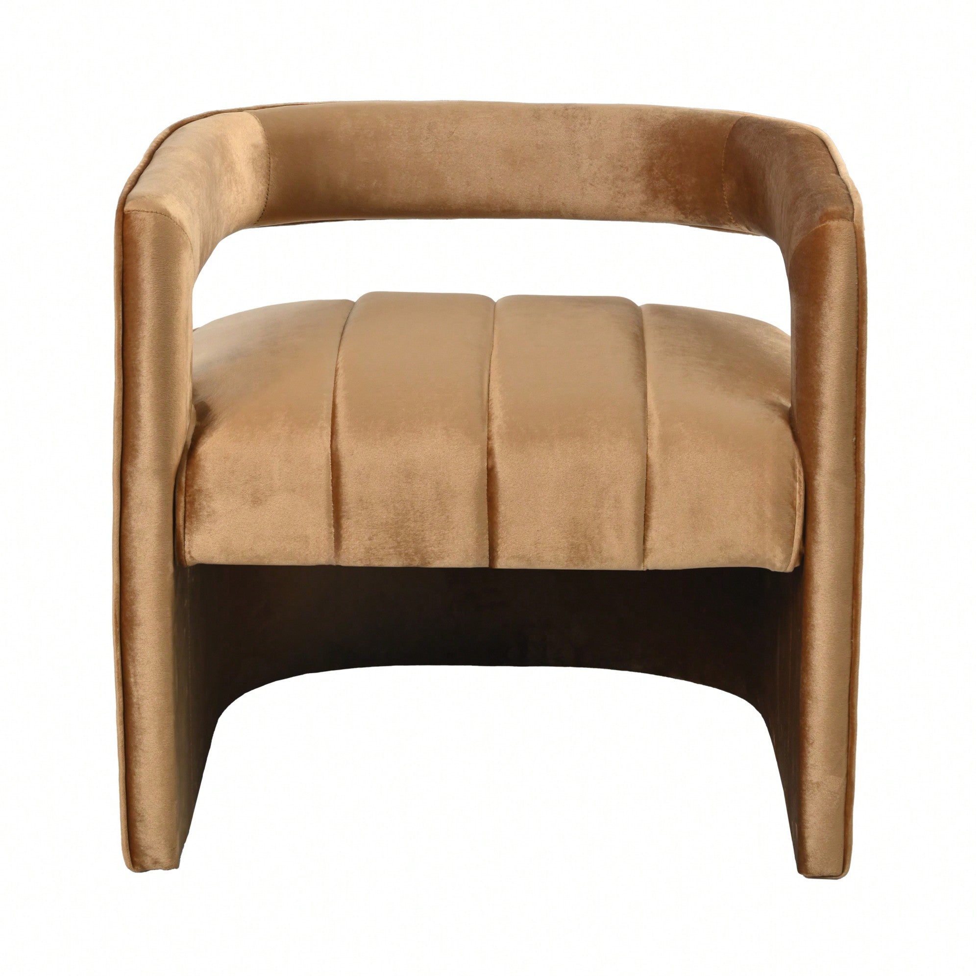Luxurious Curved Velvet Accent Chair With Ribbed Design – Fully Upholstered In Rich Brown, No Assembly Required
