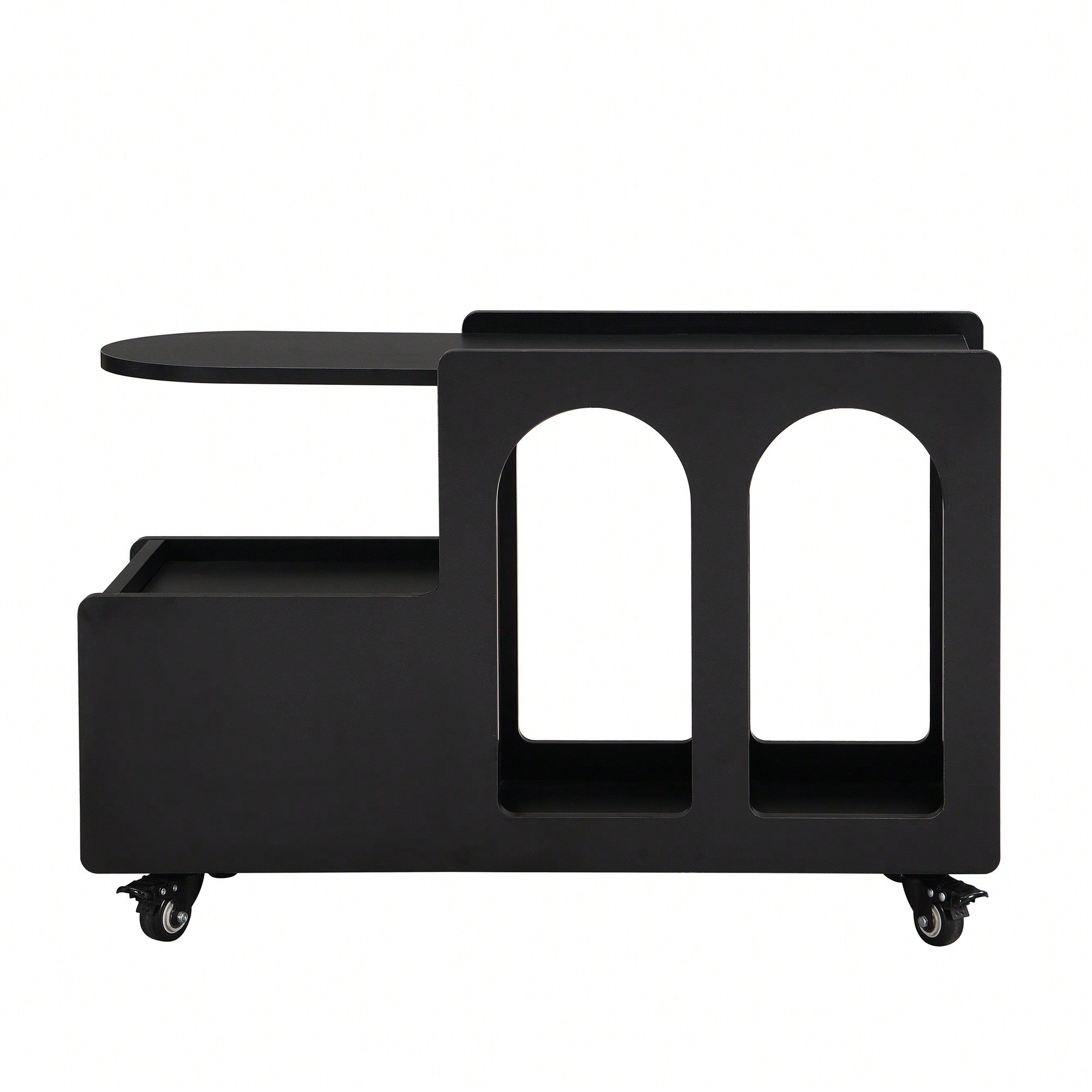 Cream Side Table With Lockable Wheels And Storage Drawer, Narrow 11.8 Inch Multi-Layer Nightstand For Living Room, Black Finish