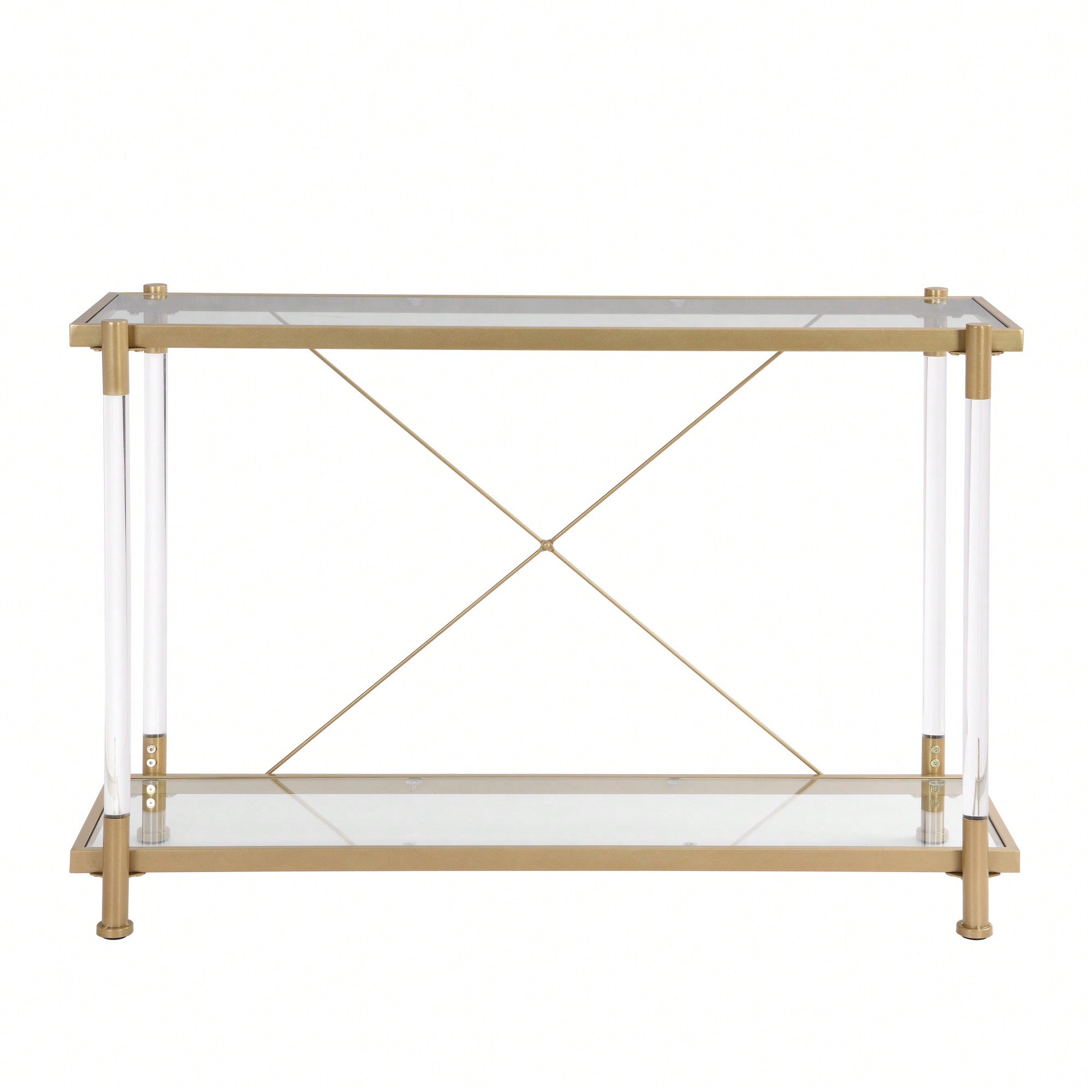 Elegant 43.31 Inch Golden Glass Console Table For Living Room And Bedroom - Stylish Acrylic Side Table