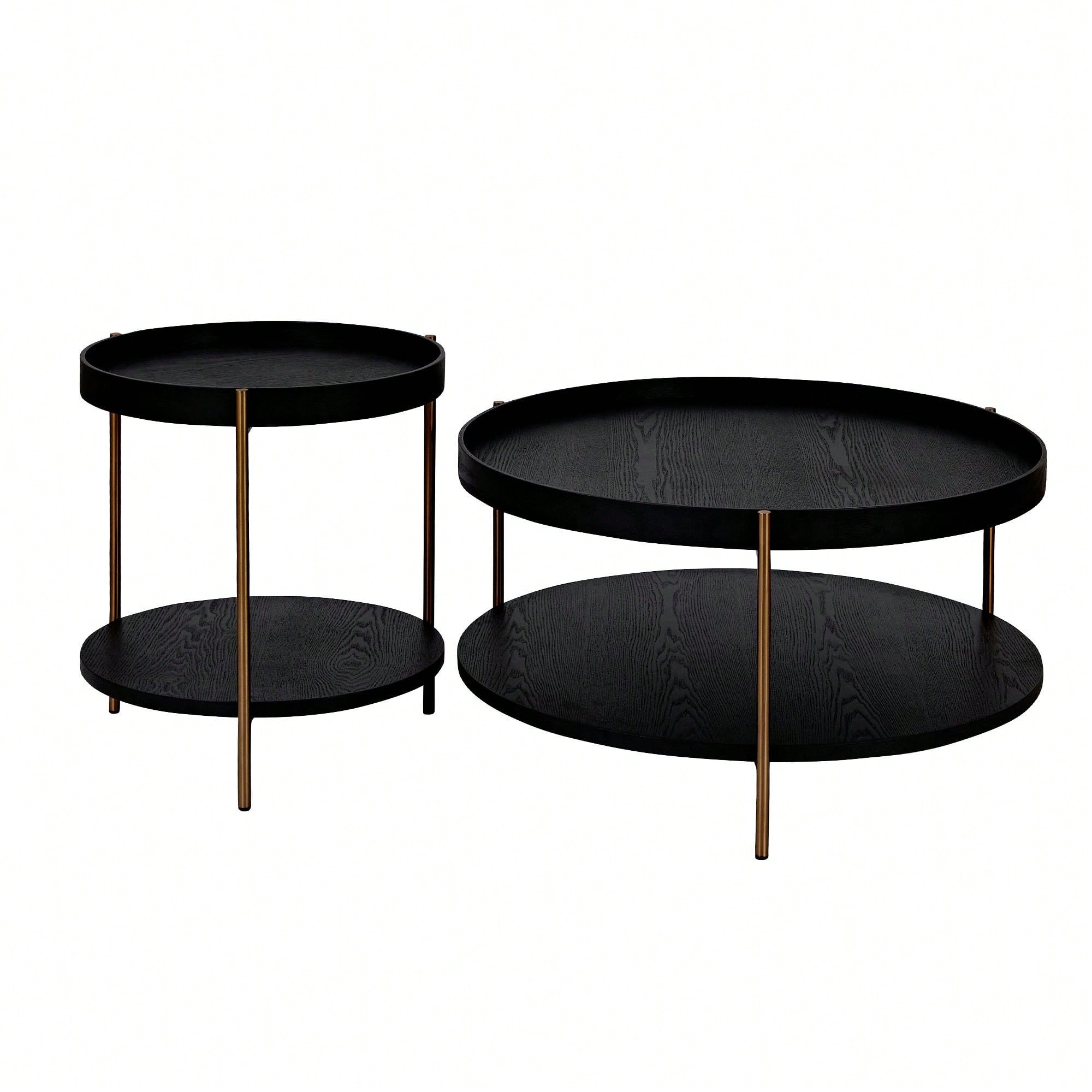 Modern 2-Tier Round Nesting Coffee Table Set For Living Room Easy Assembly Black MDF Side Tables For Bedroom Office Balcony Yard