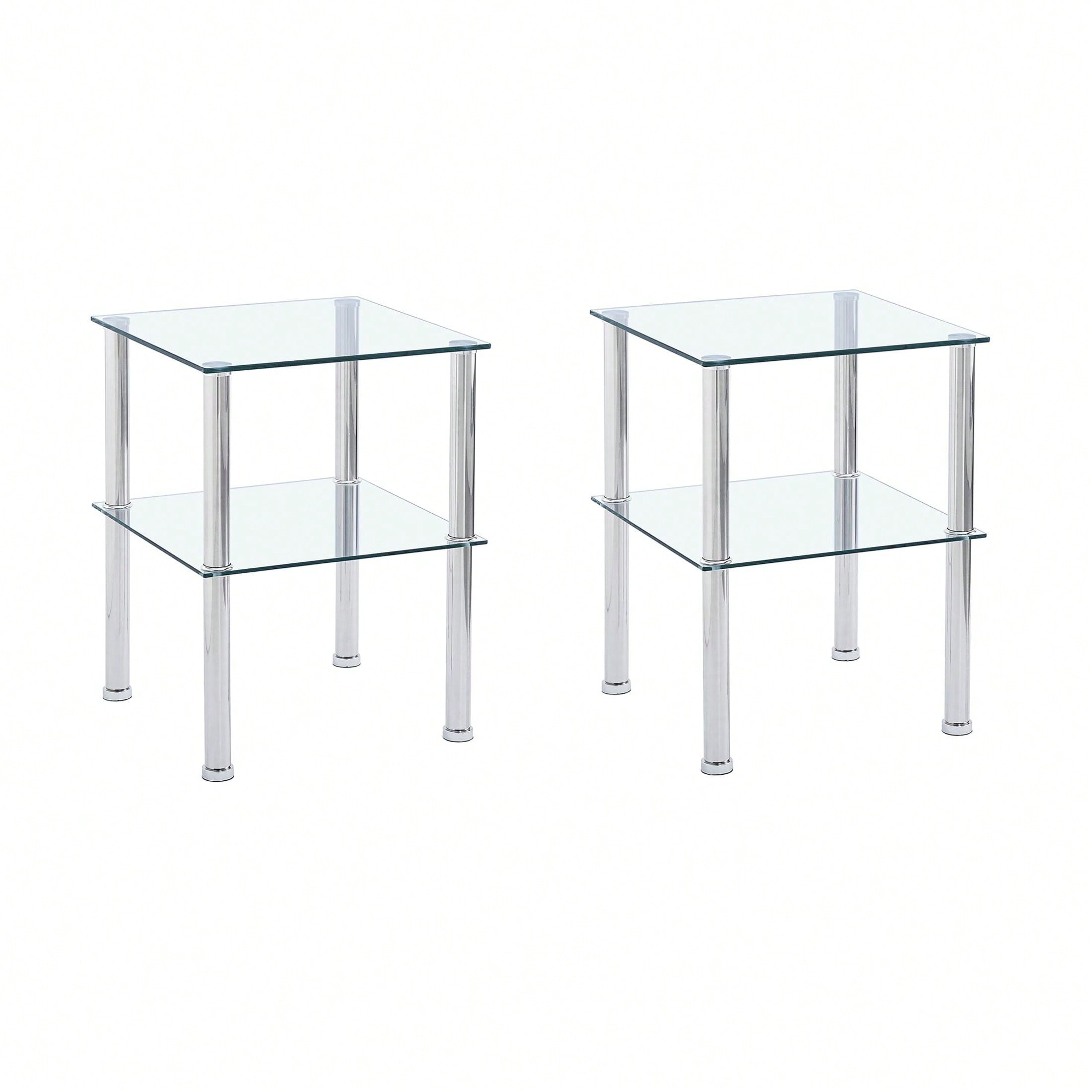 2-Piece Clear Side Table , 2-Tier Space End Table ,Modern Night Stand, Sofa Table With Storage Shelve For Living Room