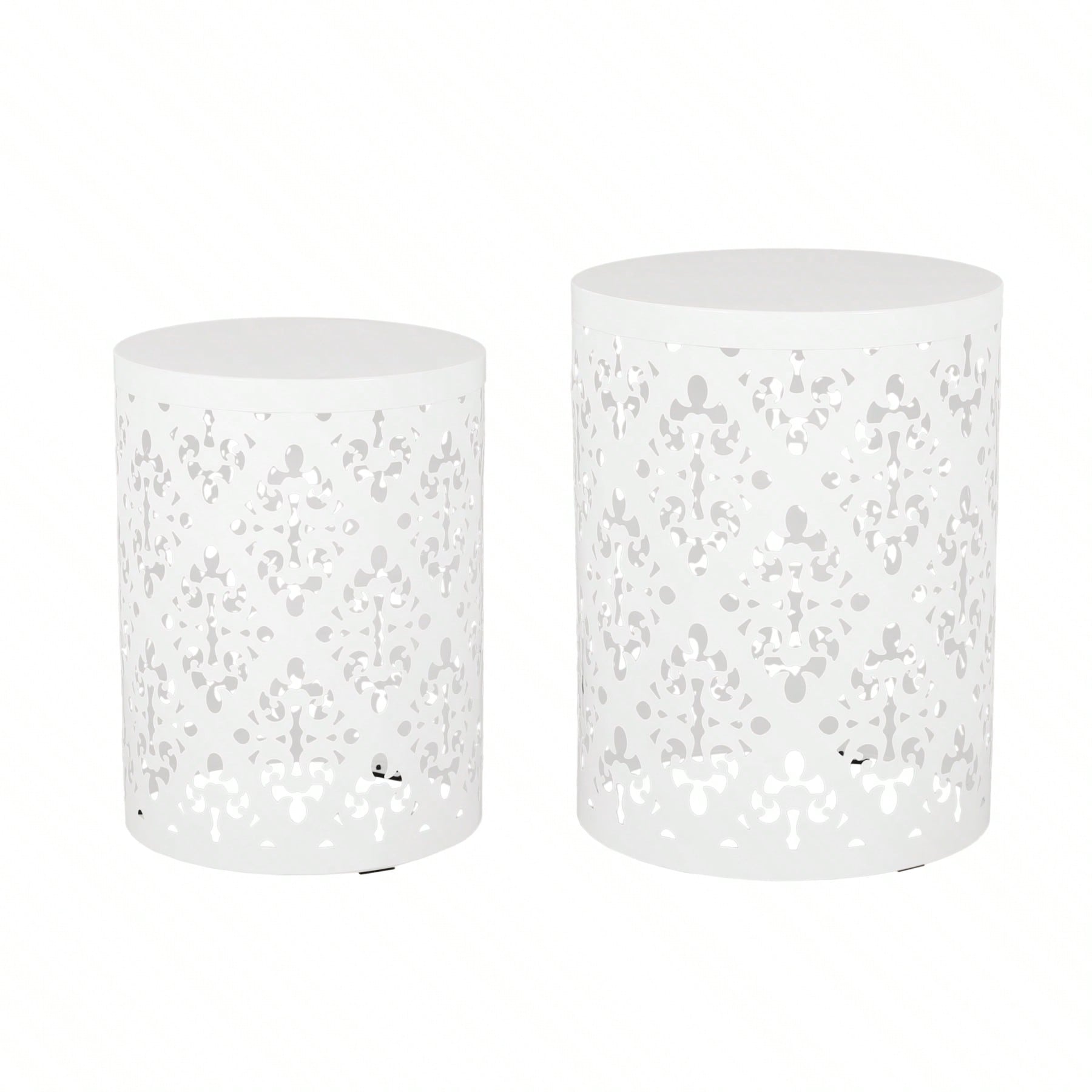 Modern Round Iron Cut Accent Table Powder-Coated Metal Side Table for Living Room and Bedroom No Assembly Required