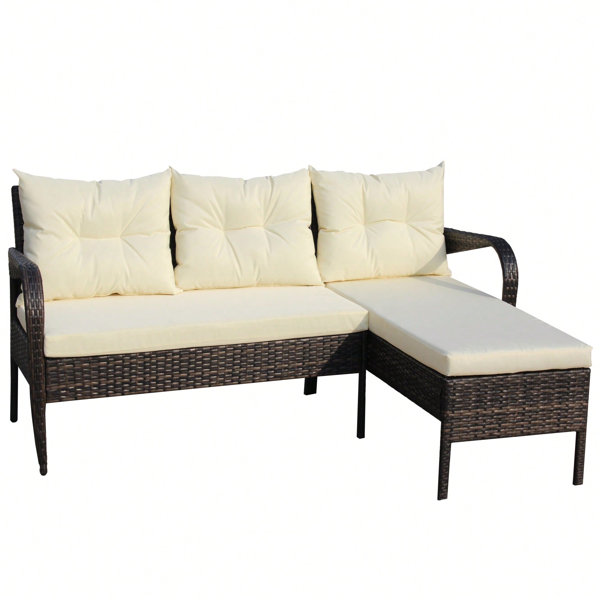 Outdoor 3-Seater Faux Wicker Rattan Sofa With Water Resistant Cushions In Brown And Beige