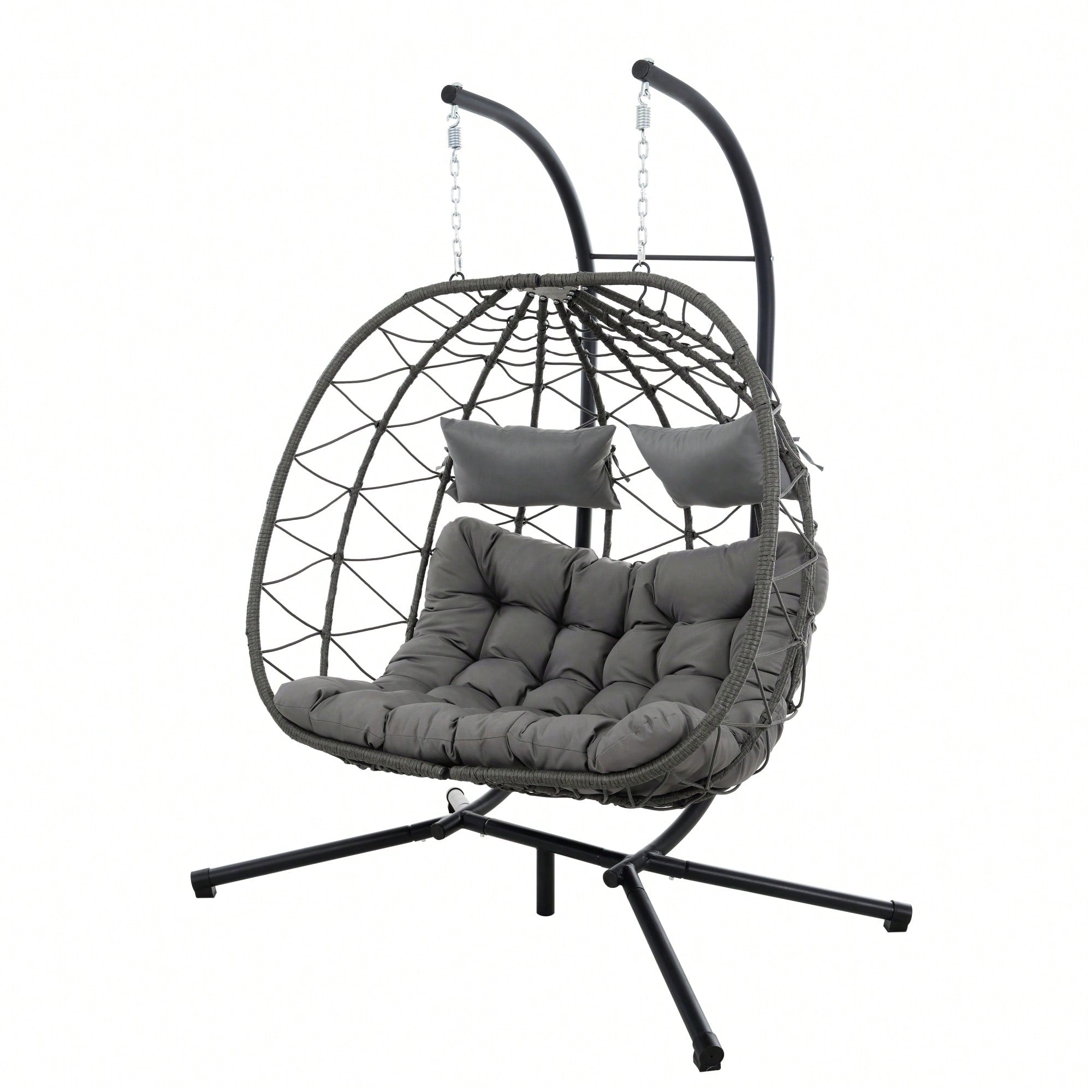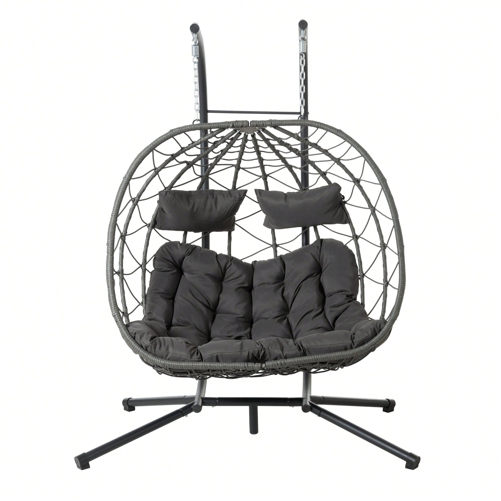 Double Person Wicker Egg Chair With Stand For Indoor Outdoor Swinging Patio Living Room Balcony