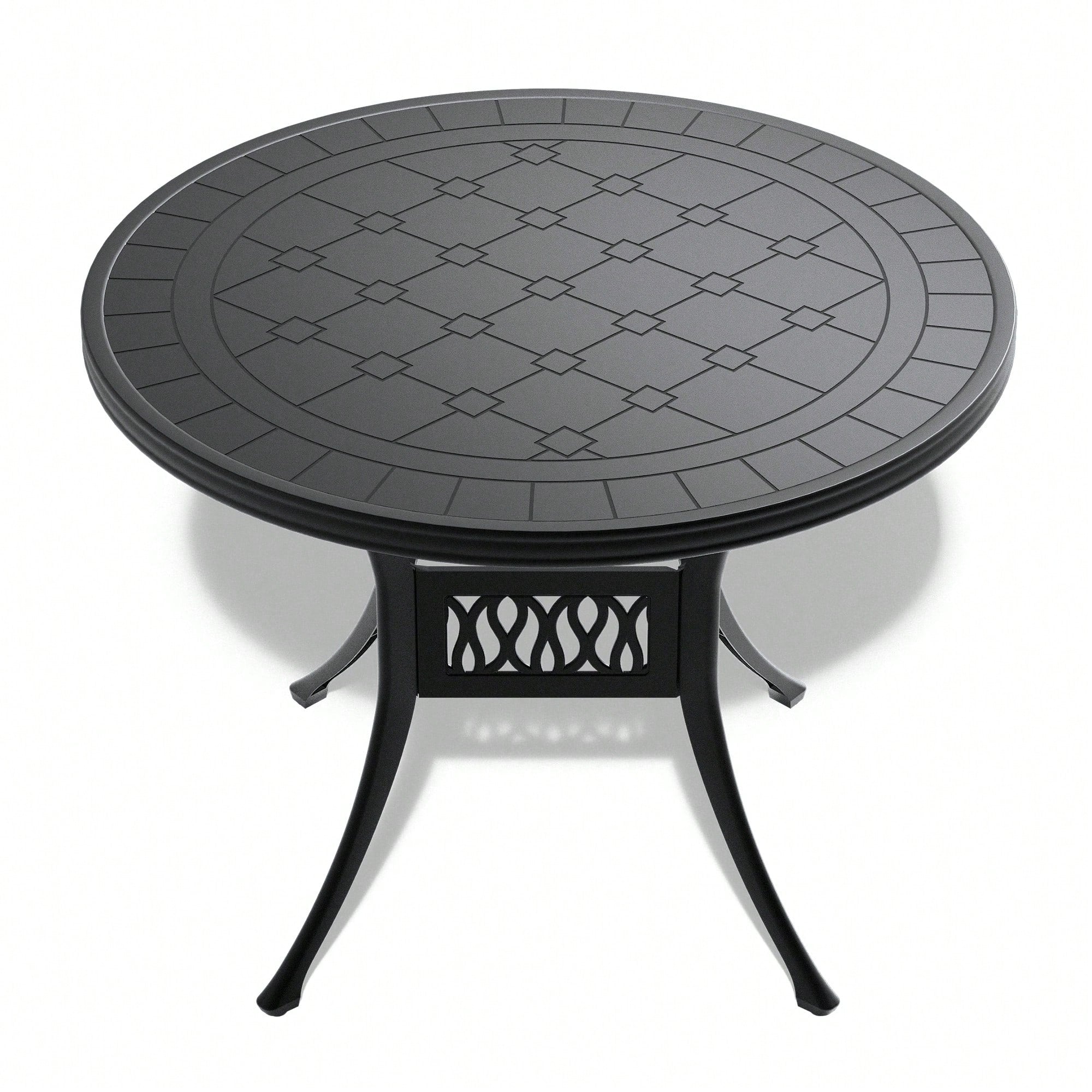 39.37-Inch Elegant Cast Aluminum Patio Dining Table With Stylish Black Frame And Intricate Carved Textured Top