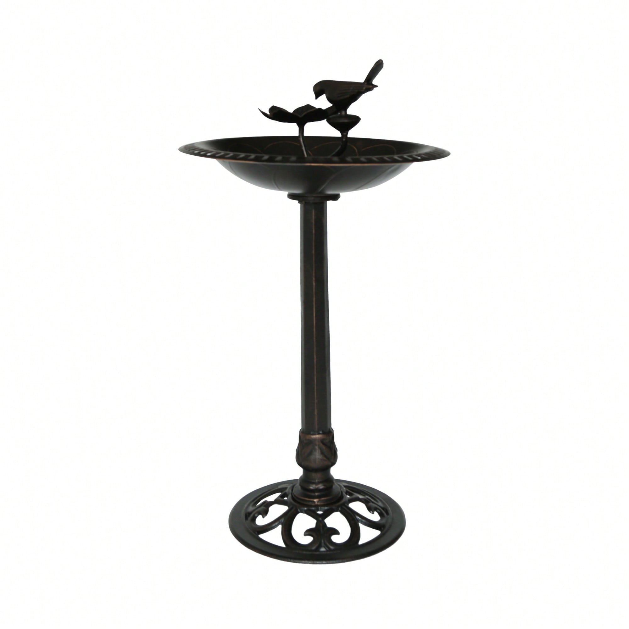 Elegant Outdoor Aluminum And Iron Bird Bath With Durable Bronze Finish And Sturdy Base