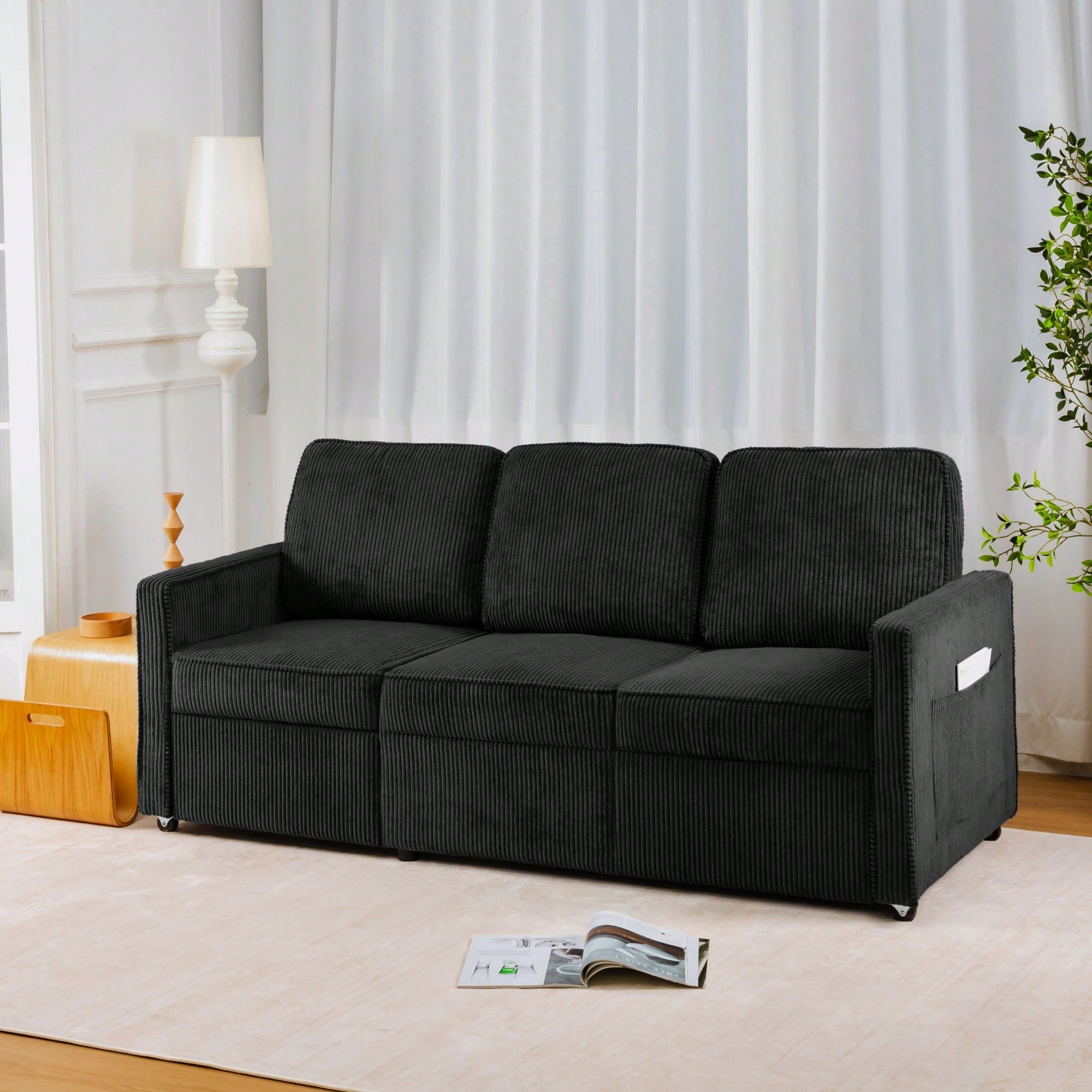 Corduroy Retractable 3 Seater Sofa For Small Spaces Easy Assembly Flexible Design Ideal For Living Rooms And Apartments Cream White