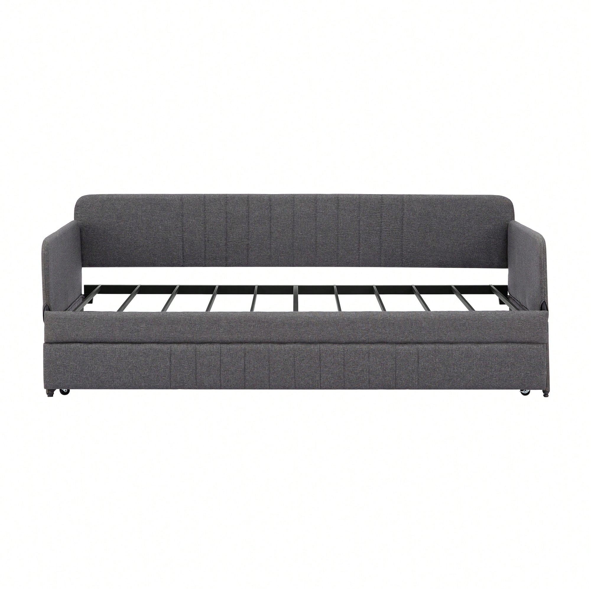 Twin Size Metal Framed Daybed Sofa Bed With Trundle 78.4''w X 41''d X 29.8''h Grey