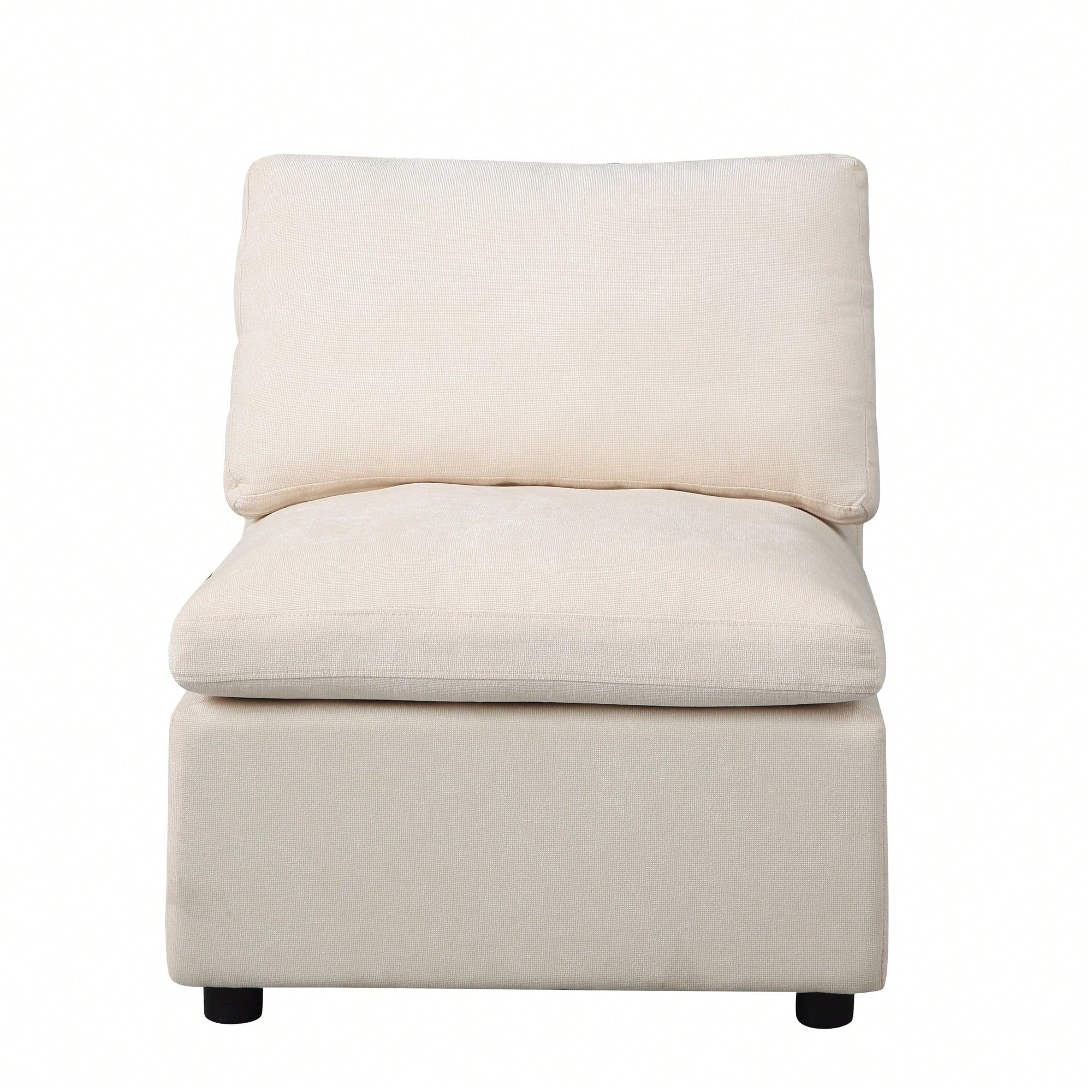 Contemporary Chenille Beige Modular Armless Accent Chair For Sectional Sofa