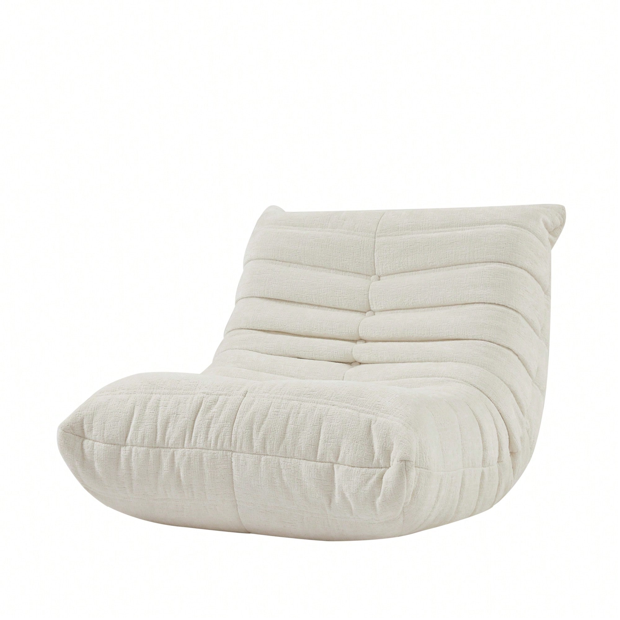 Cozy Chenille Fireside Chair And Modern Armless Lounge Sofa For Living Room, Bedroom, Or Office - Stylish Accent Bean Bag Seating In White