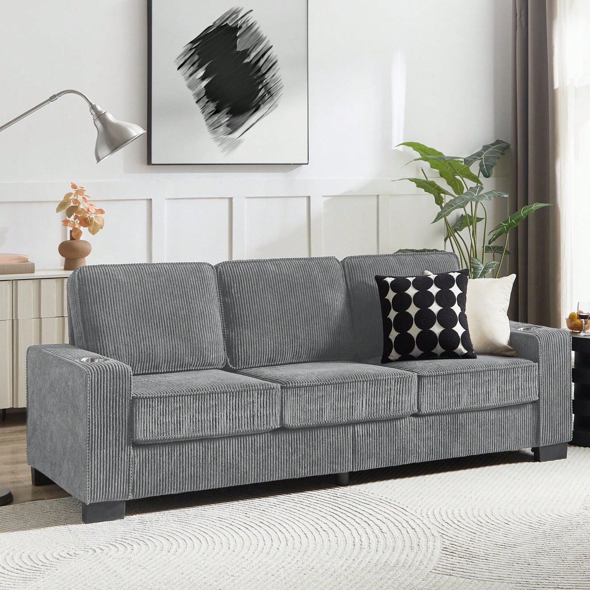 Regular price $362.99 USDSale price $362.99 USD Regular priceUnit price per$545.99 USDSale Sold out1. Features - Corduroy fabric for a soft and comfortable touch - Armrests with cup holders for convenience - High-density sponge pads with springs for excellent...