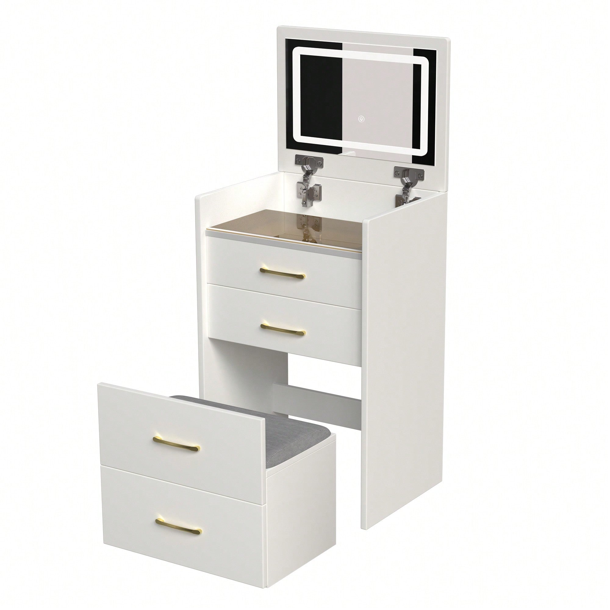 Elegant White Vanity Desk Set with Adjustable LED Mirror and 4 Storage Drawers