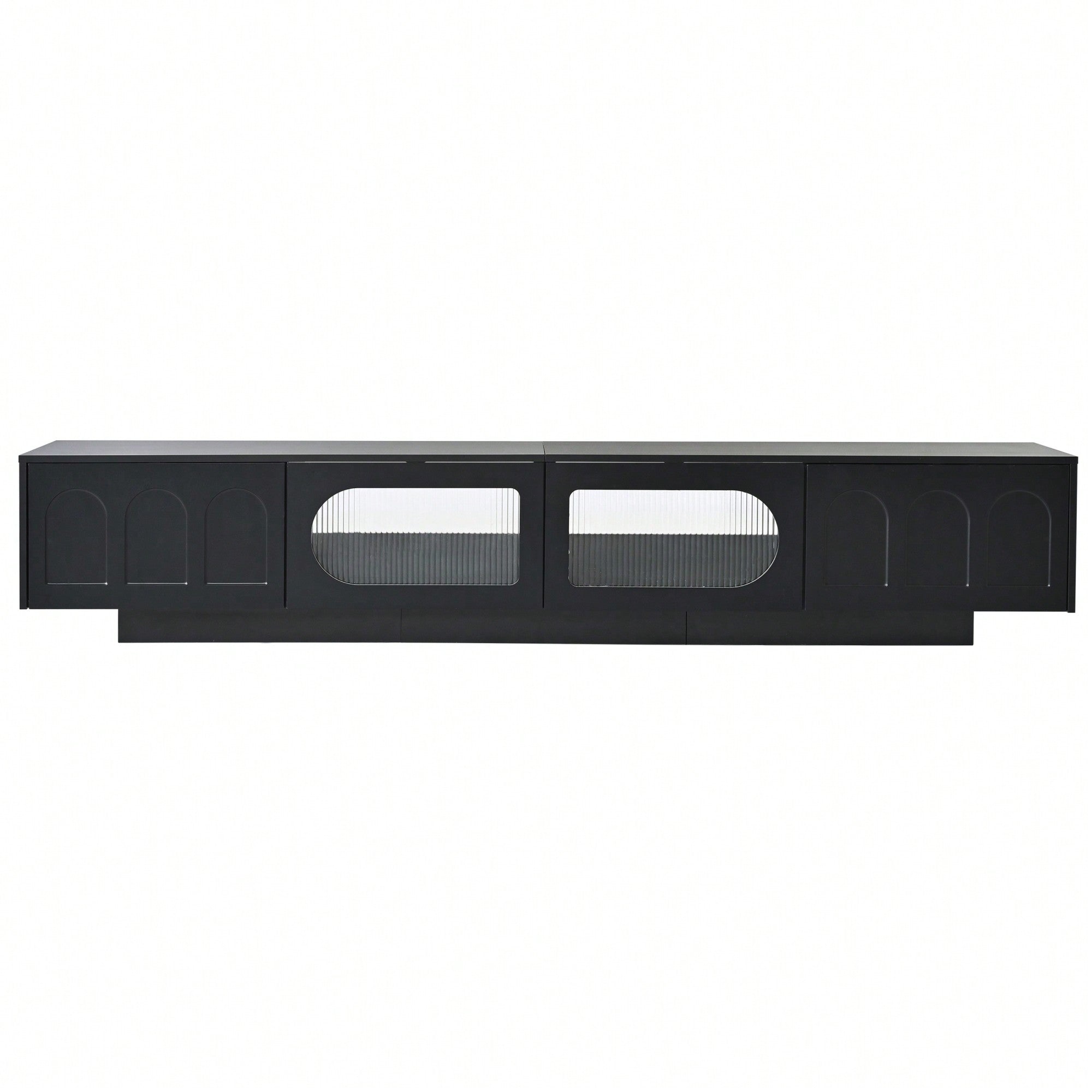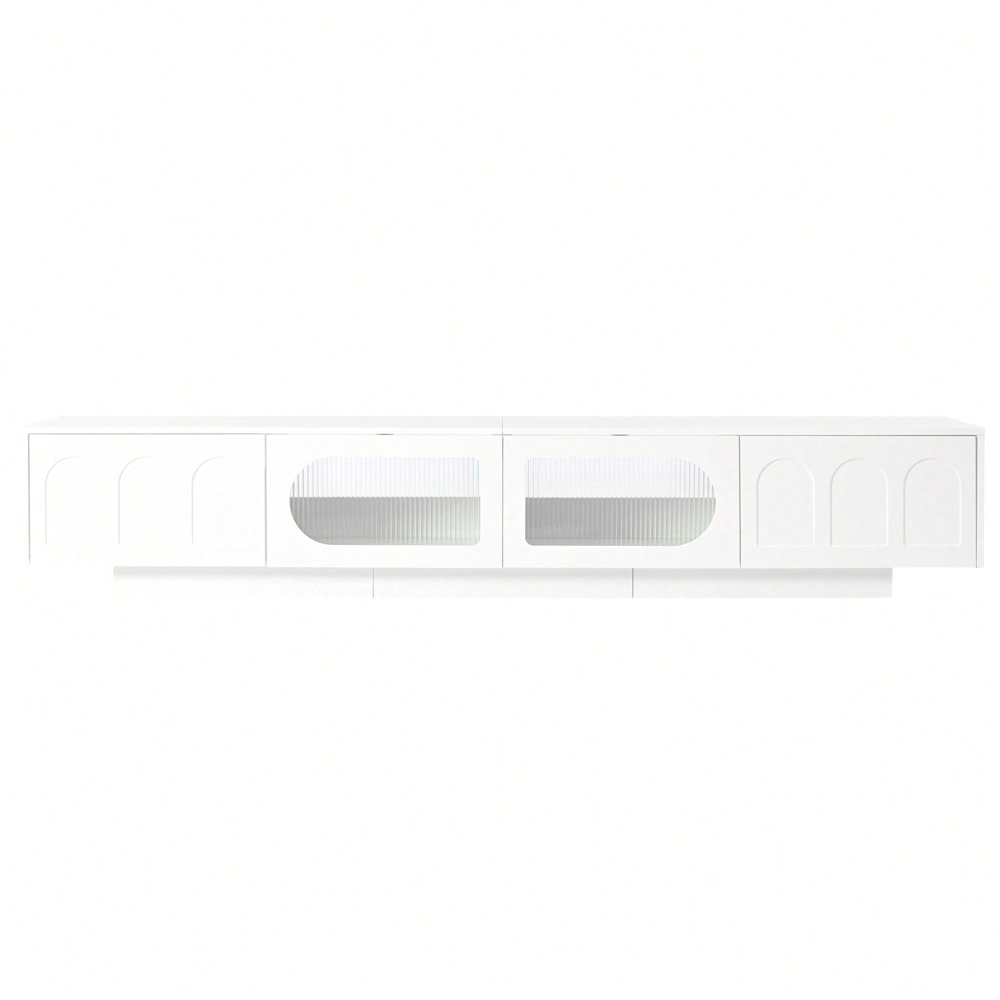 Stylish TV Stand With Fluted Glass Doors For TVs Up To 95 Inches, Functional Media Console With Arched Cabinet Doors And APP-Controlled LED Lights, Modern Entertainment Center In White