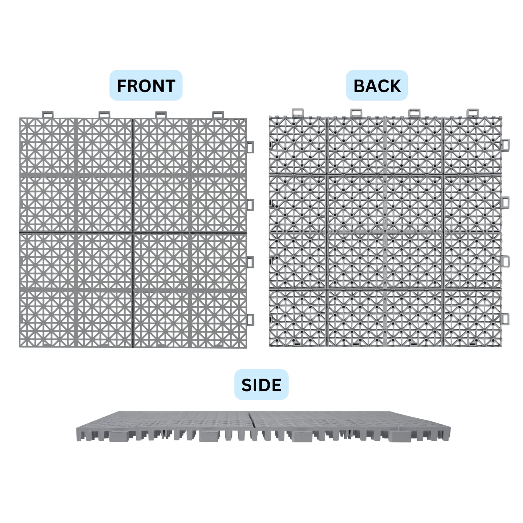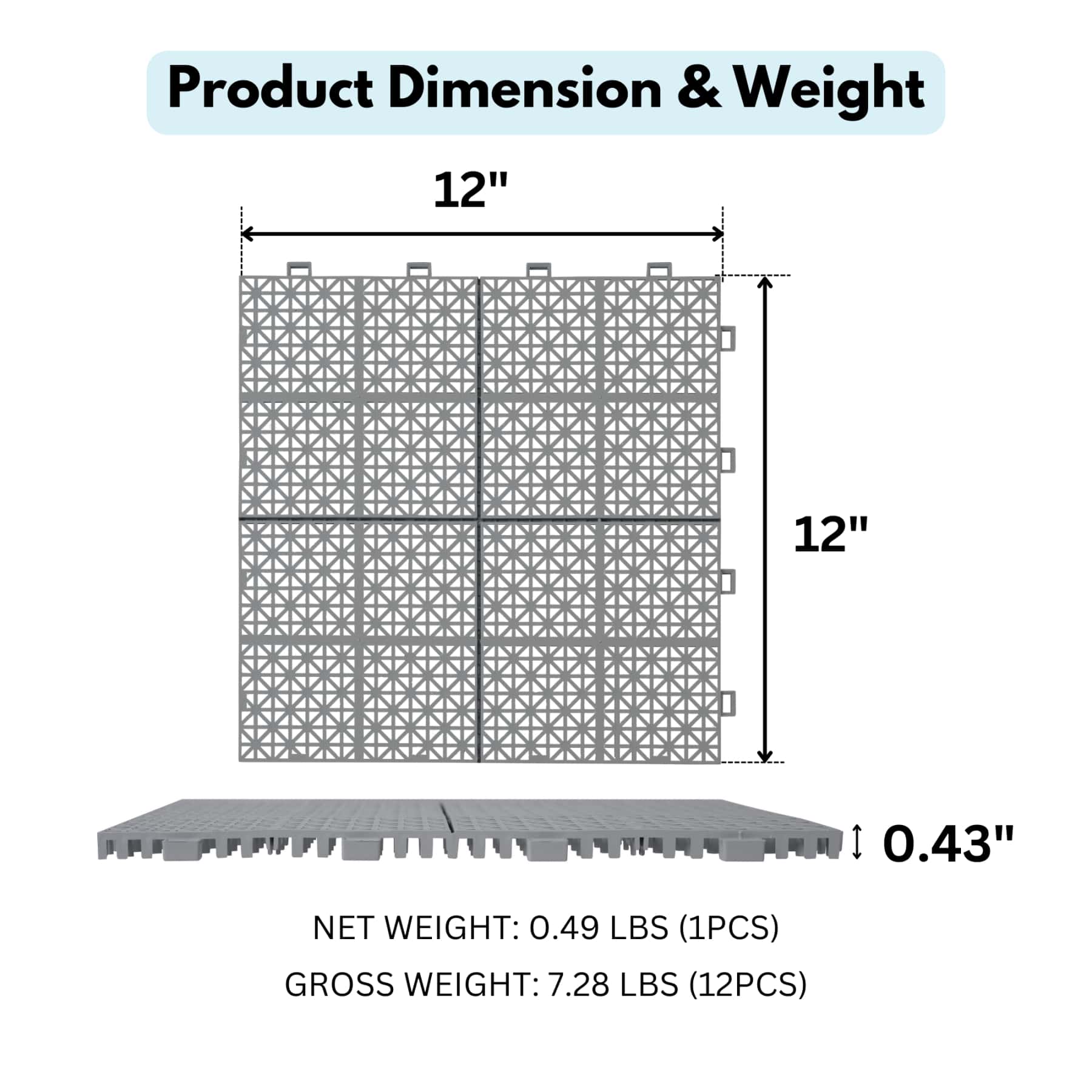 Heavy Duty 12x12 Interlocking Waterproof Patio Tiles for Outdoor Spaces - Anti-Slip Snap Together Flooring Gray Pack of 12