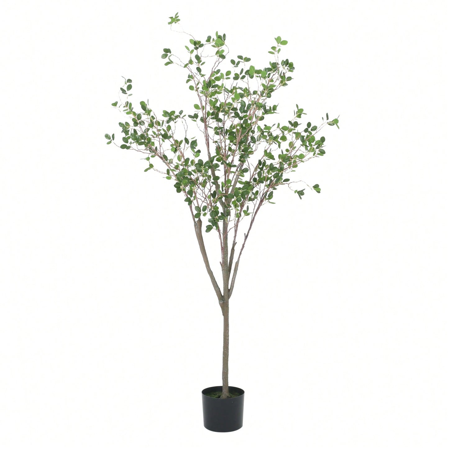 Enhance your living space with this exquisite artificial leaf tree, designed to bring a touch of nature indoors. Featuring clusters of rich green oval leaves that mimic the graceful appearance of a genuine leaf tree, it adds a refreshing aesthetic to any room. The plant boasts beautifully textured bark and delicate, thin branches, creating an elegant profile that seamlessly fits into a variety of decor styles. Perfectly pre-potted, this plant is ready to complement your favorite decorative baskets or planter pots, making it a versatile addition to your home.