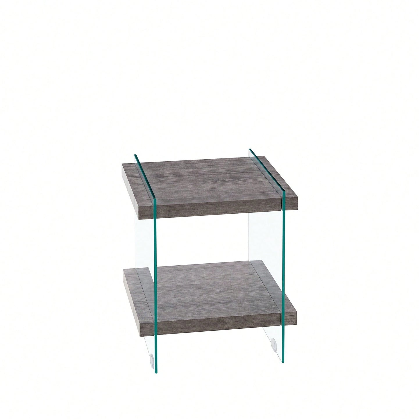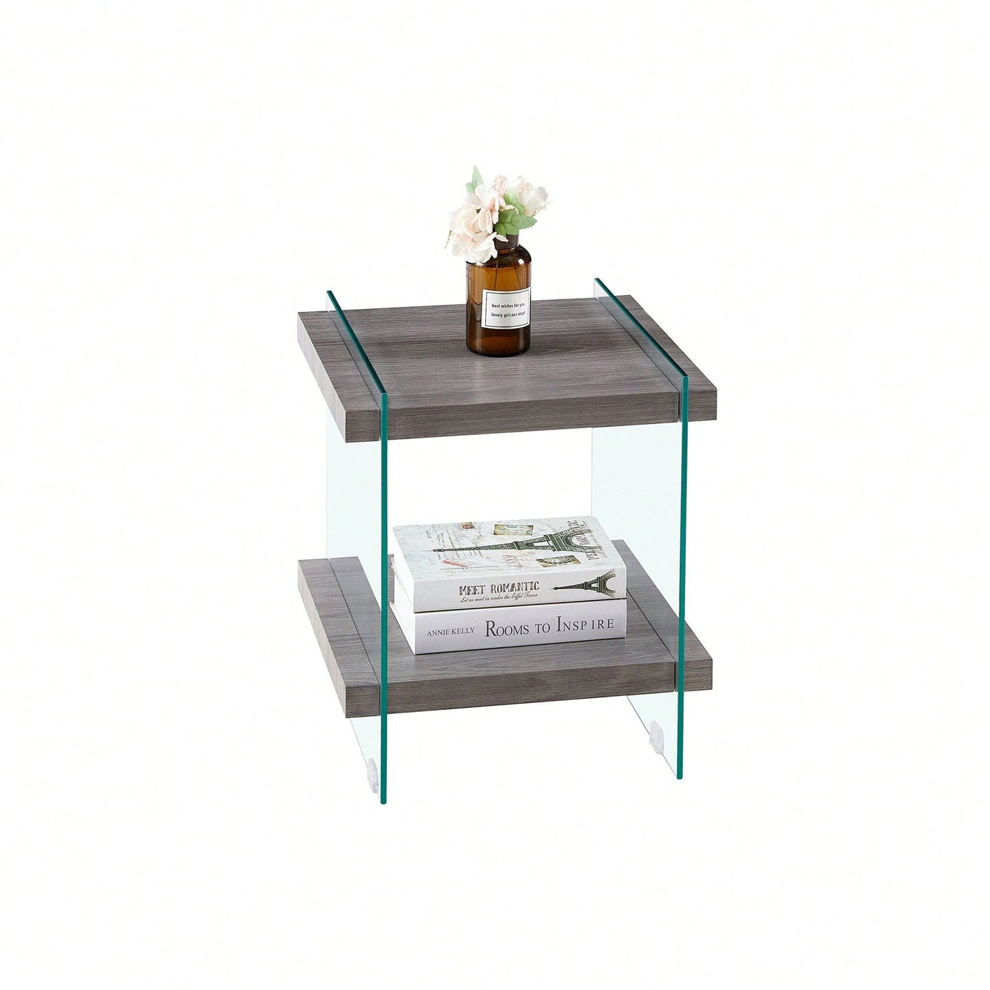 17.72" Sleek And Sturdy Tempered Glass Leg Side Table With Dual MDF Shelves, Modern Nightstand End Table For Living Roon, Bedroom