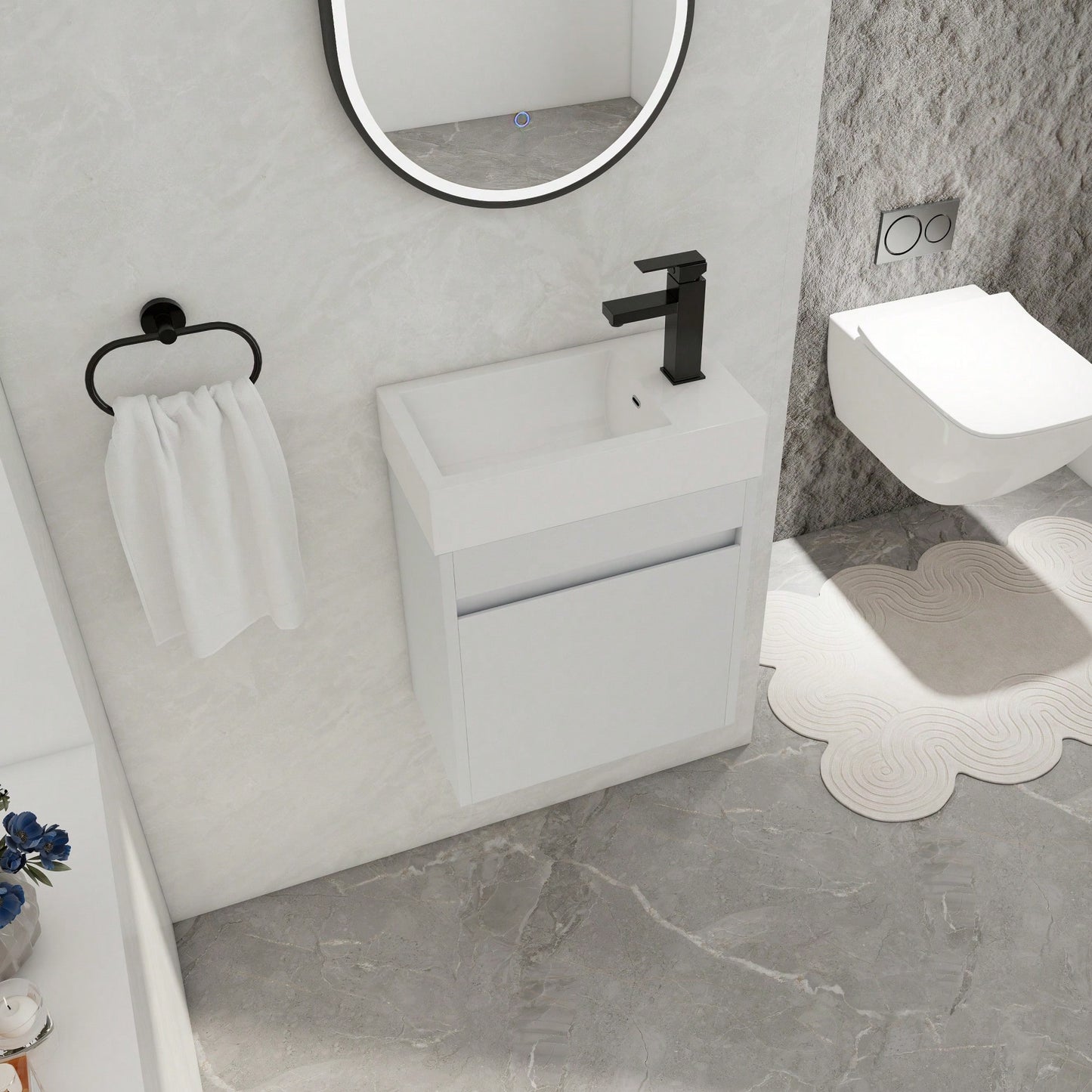 - 18-inch floating wall-mounted design for a modern look