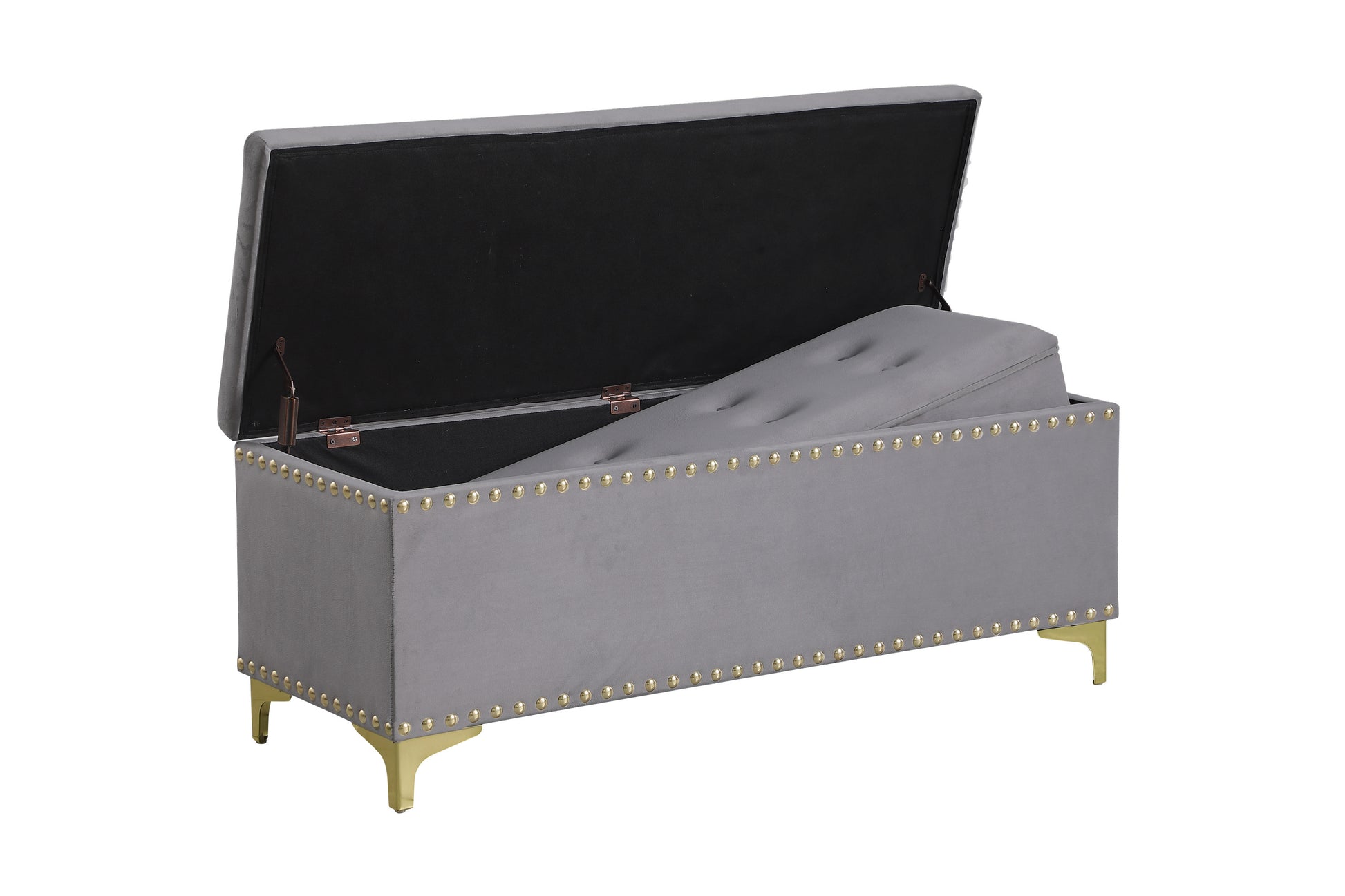 Large Storage Benches with Nailhead Trim Tufted Velvet 2 in 1 Combination for Living Room Entryway Hallway Bedroom Gold Legs 250lbs Capacity