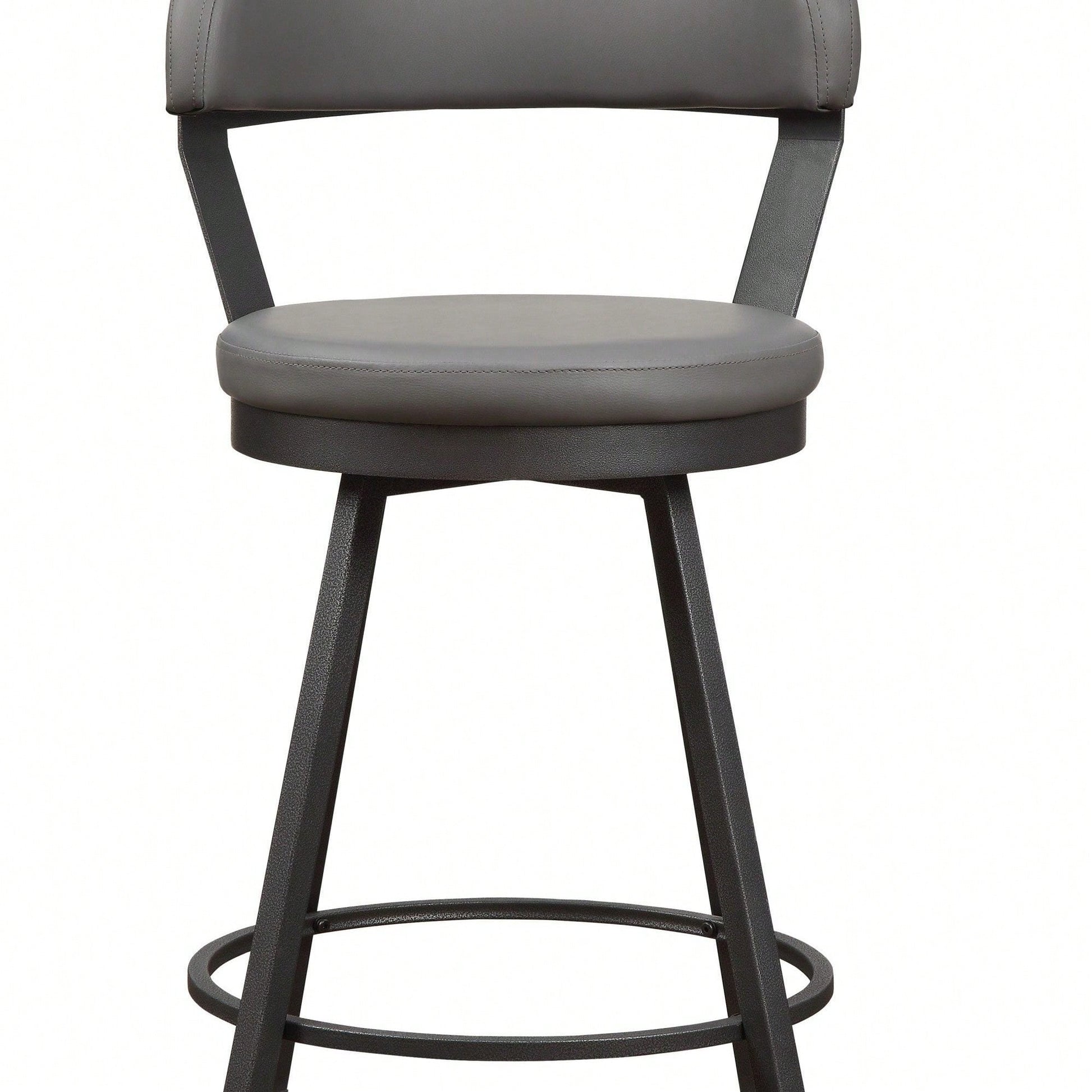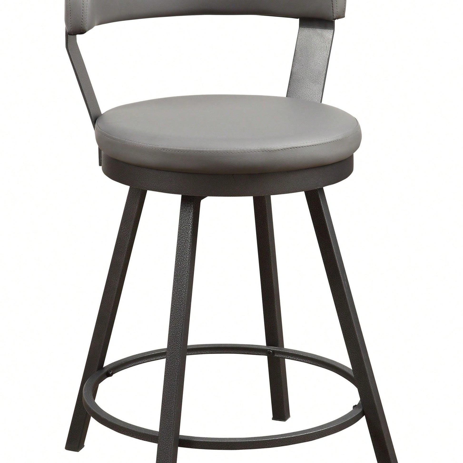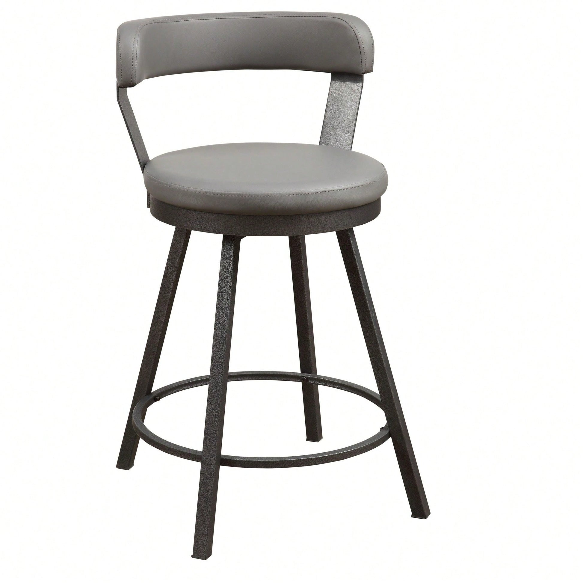 24-Inch Counter Height Chairs Set Of 2pc Grey Seat 360-Degree Swivel Faux Leather Upholstered Dining Room Furniture