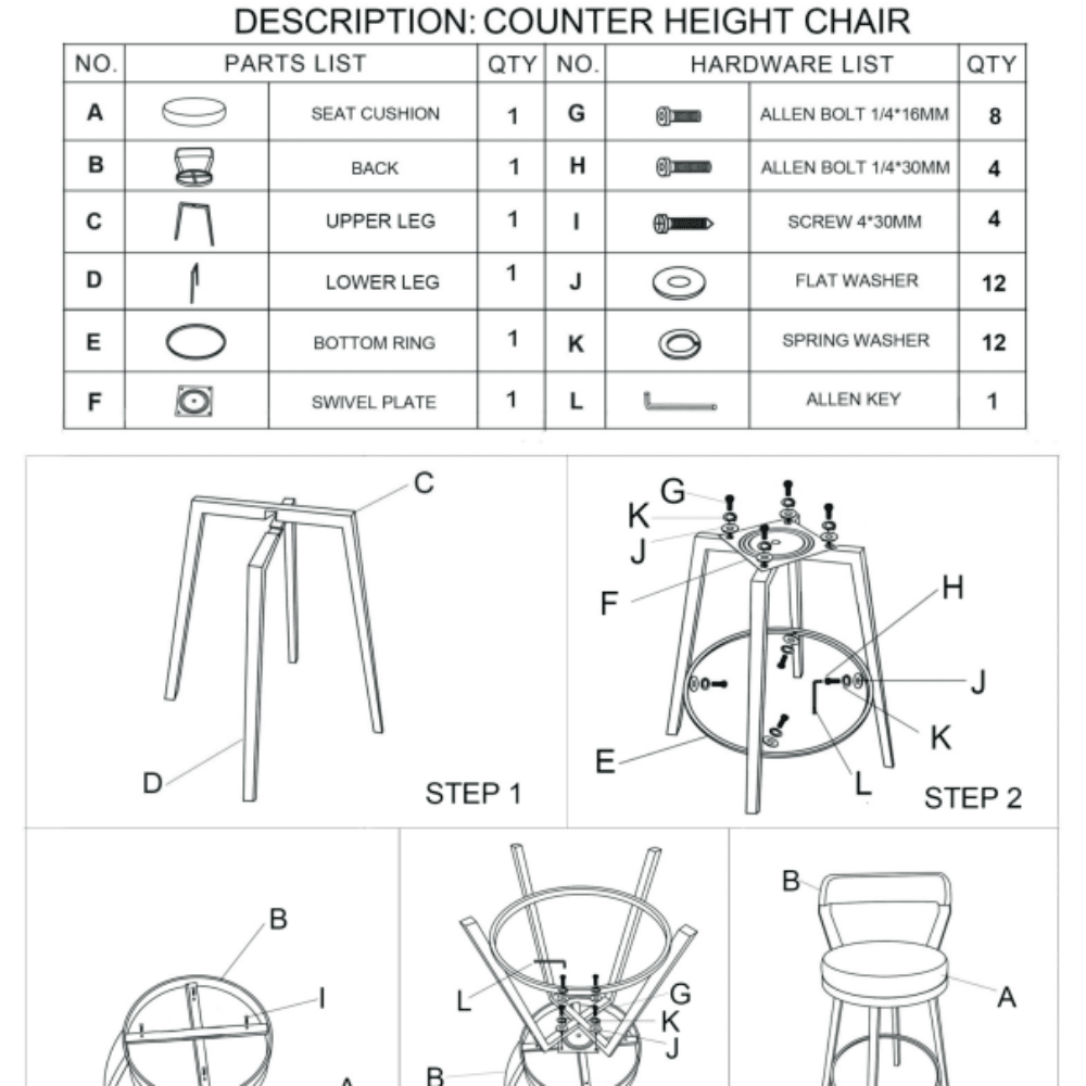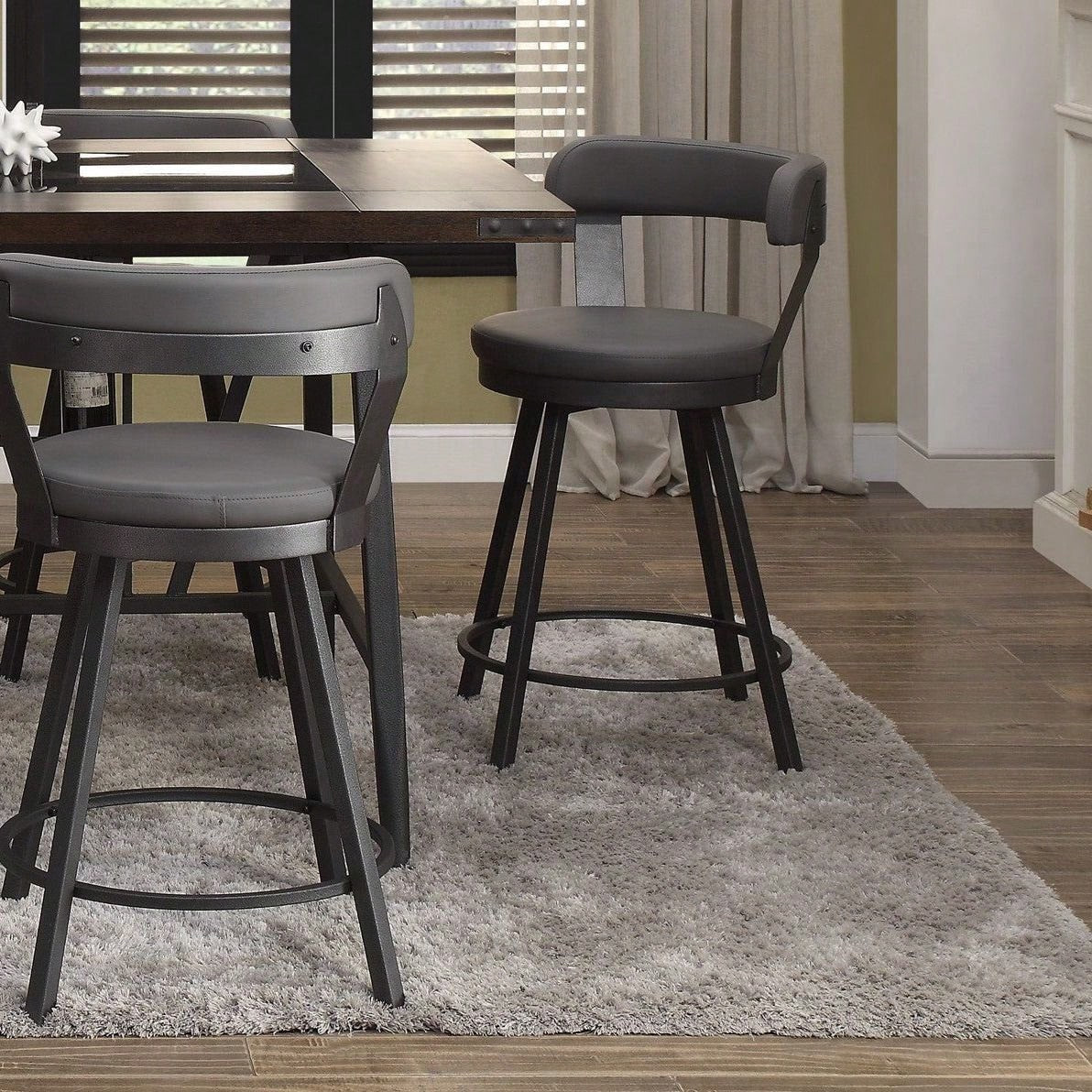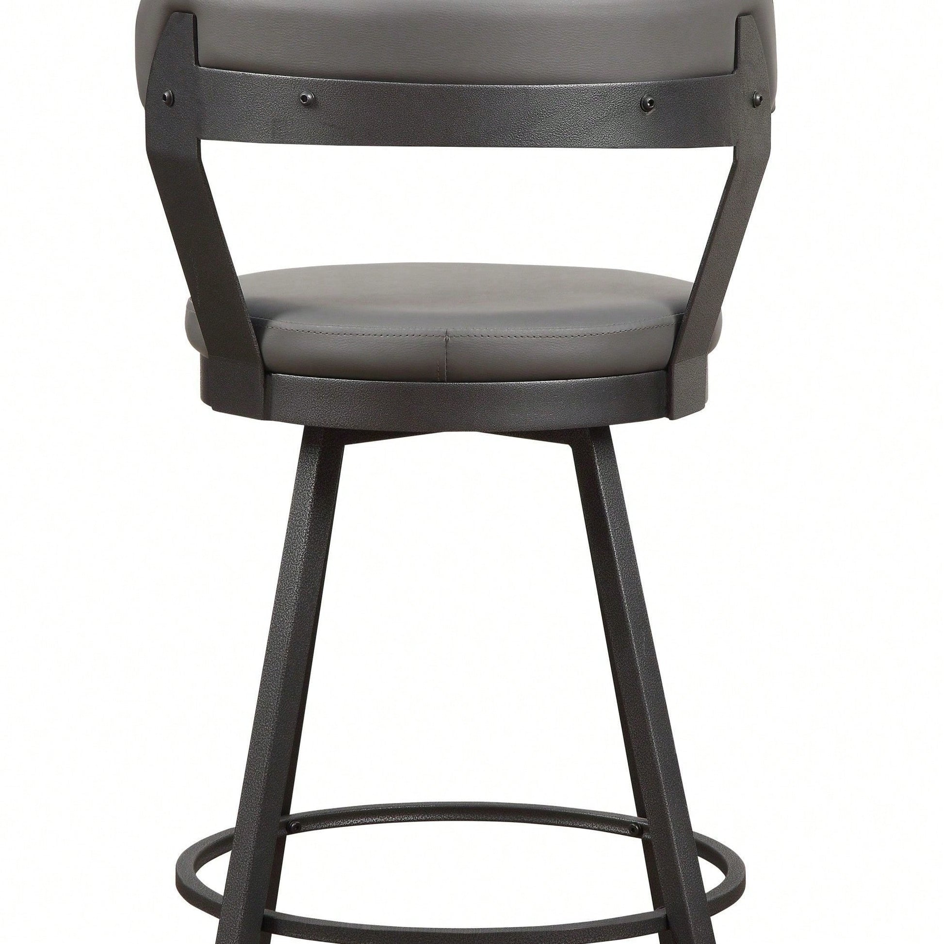 24-Inch Counter Height Chairs Set Of 2pc Grey Seat 360-Degree Swivel Faux Leather Upholstered Dining Room Furniture