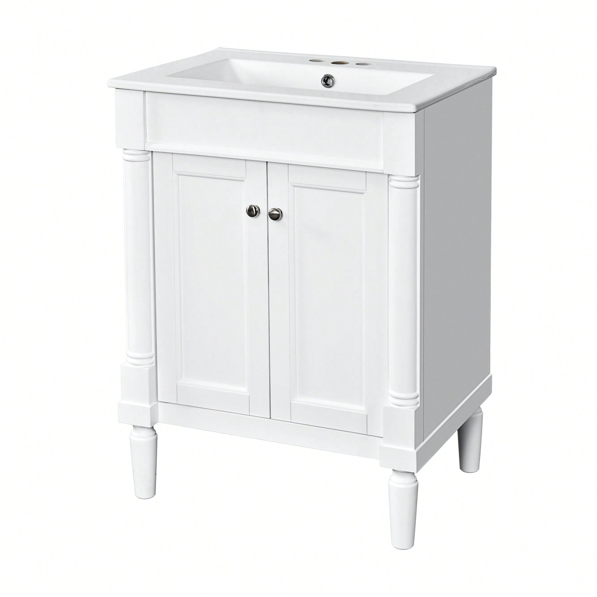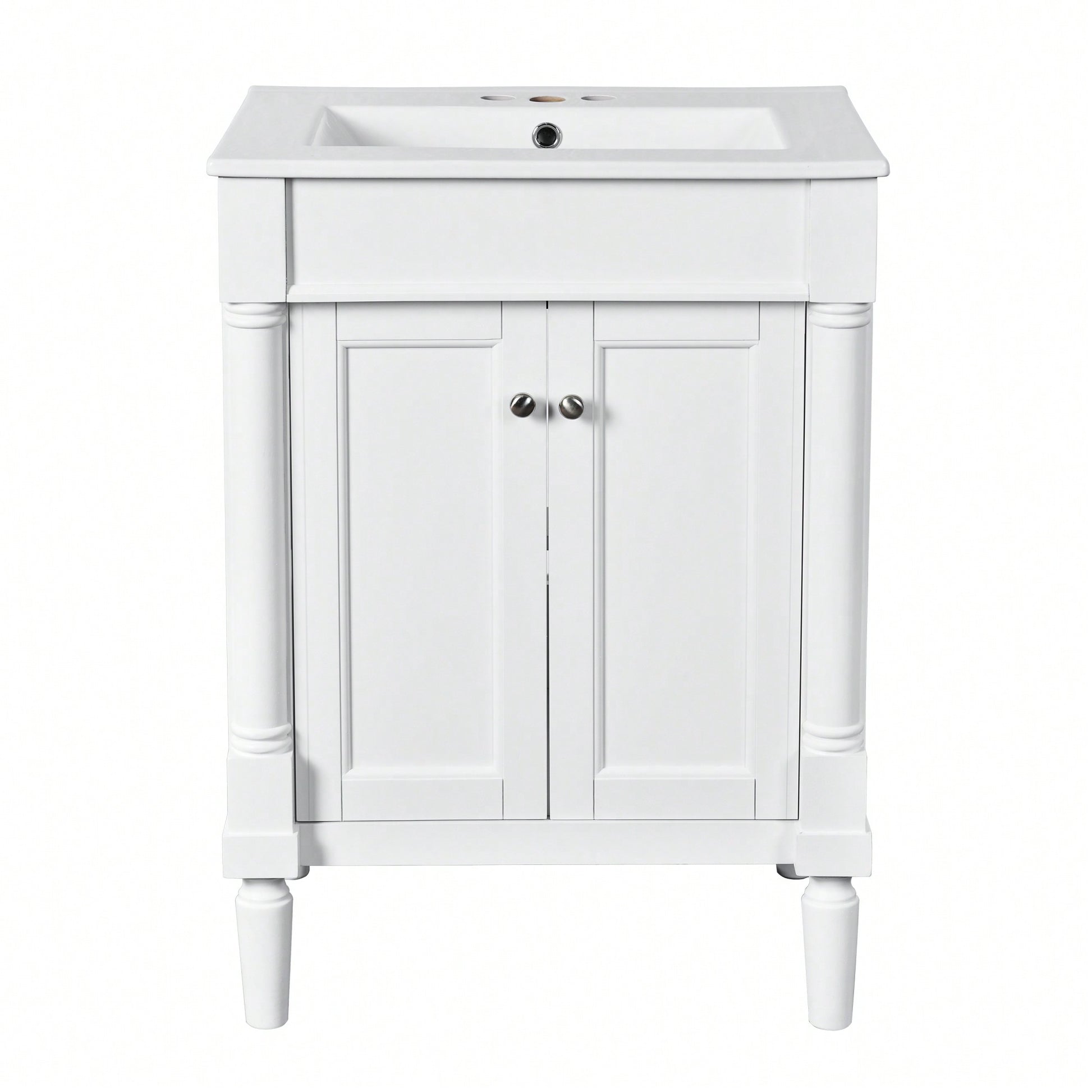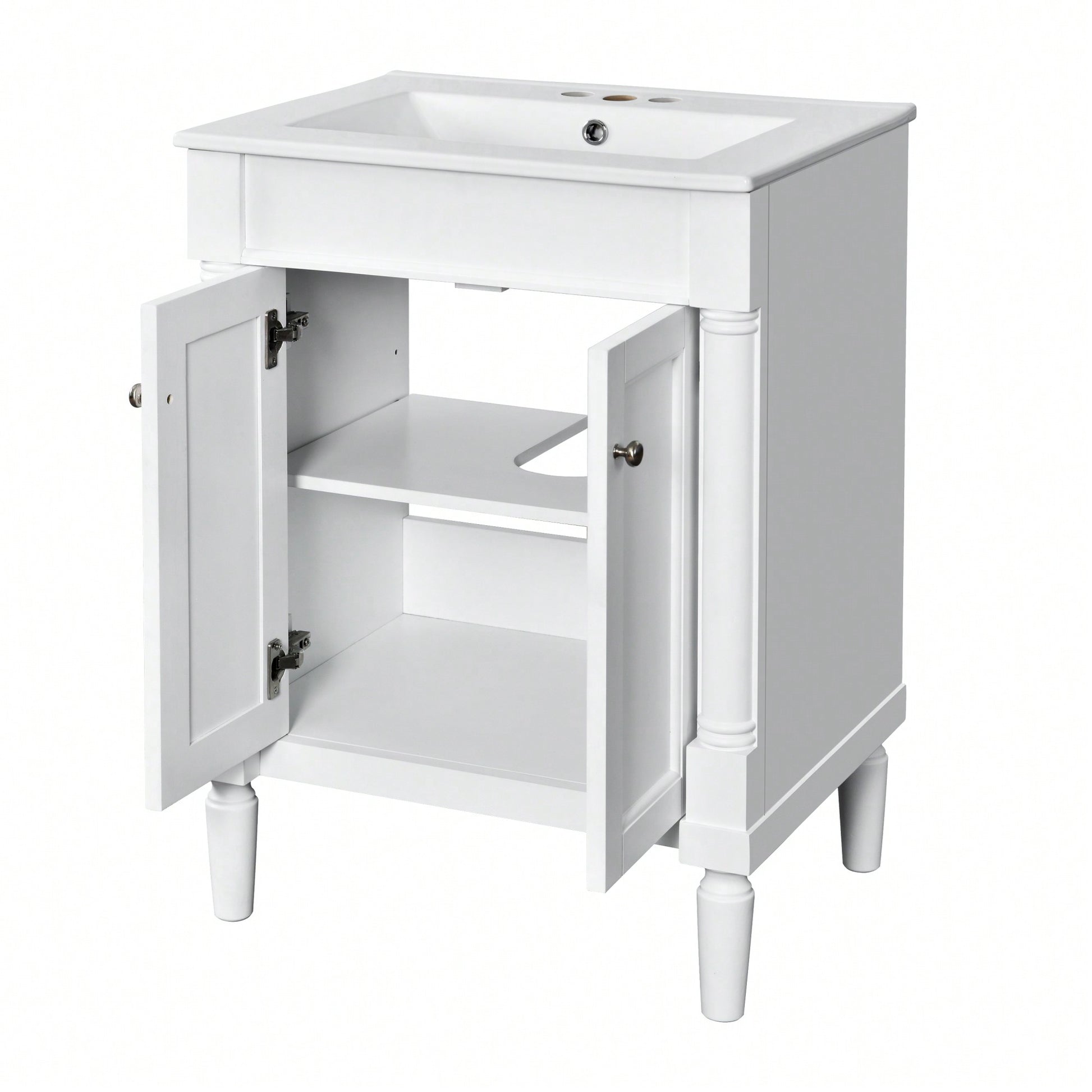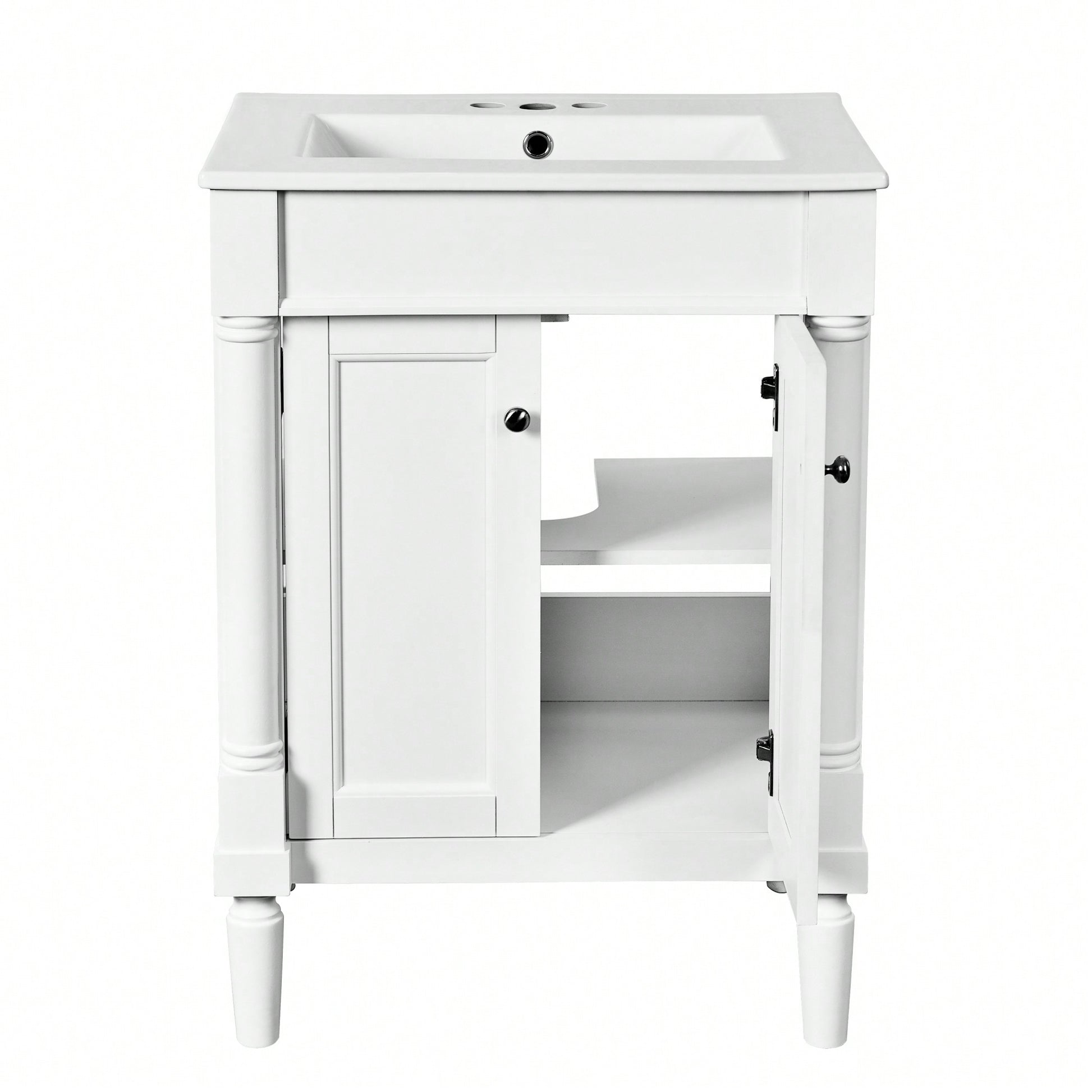 24 Inch Modern Bathroom Vanity With Sink And Storage Shelves, Stylish 2-Tier Cabinet For Organized Bathroom Space