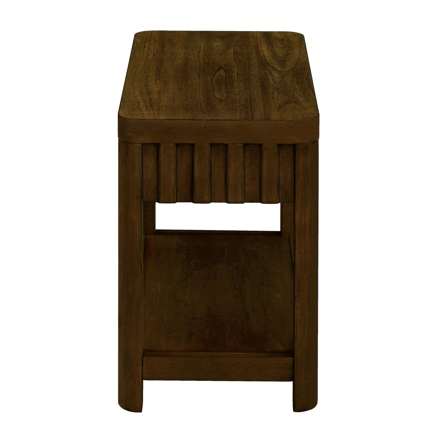 25 Inch Rectangular Farmhouse End Table With Storage Shelf Solid Wood Legs For Living Room Bedroom Office Walnut Finish