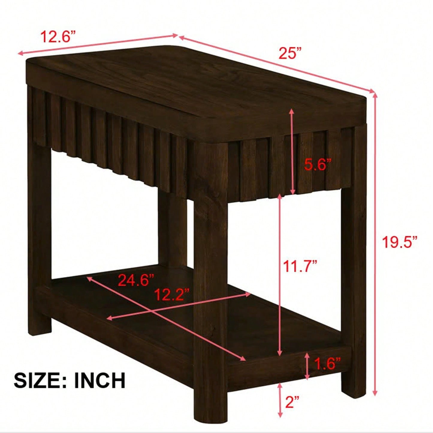 This 25'' rectangular farmhouse end table combines style and functionality, making it an ideal addition to your living room, bedroom, or office. Crafted from high-quality solid pine wood, this table features a sturdy construction that ensures stability and durability. The table top can hold up to 132lbs, while the bottom shelf provides additional storage with a capacity of 77lbs. The rounded corners enhance safety, making it a perfect choice for homes with children or pets. Its waterproof and scald-resistant surface allows for easy maintenance, whether you're placing drinks or plants on it. Assembly is straightforward, thanks to the clear instructions provided, allowing you to enjoy your new side table in no time.