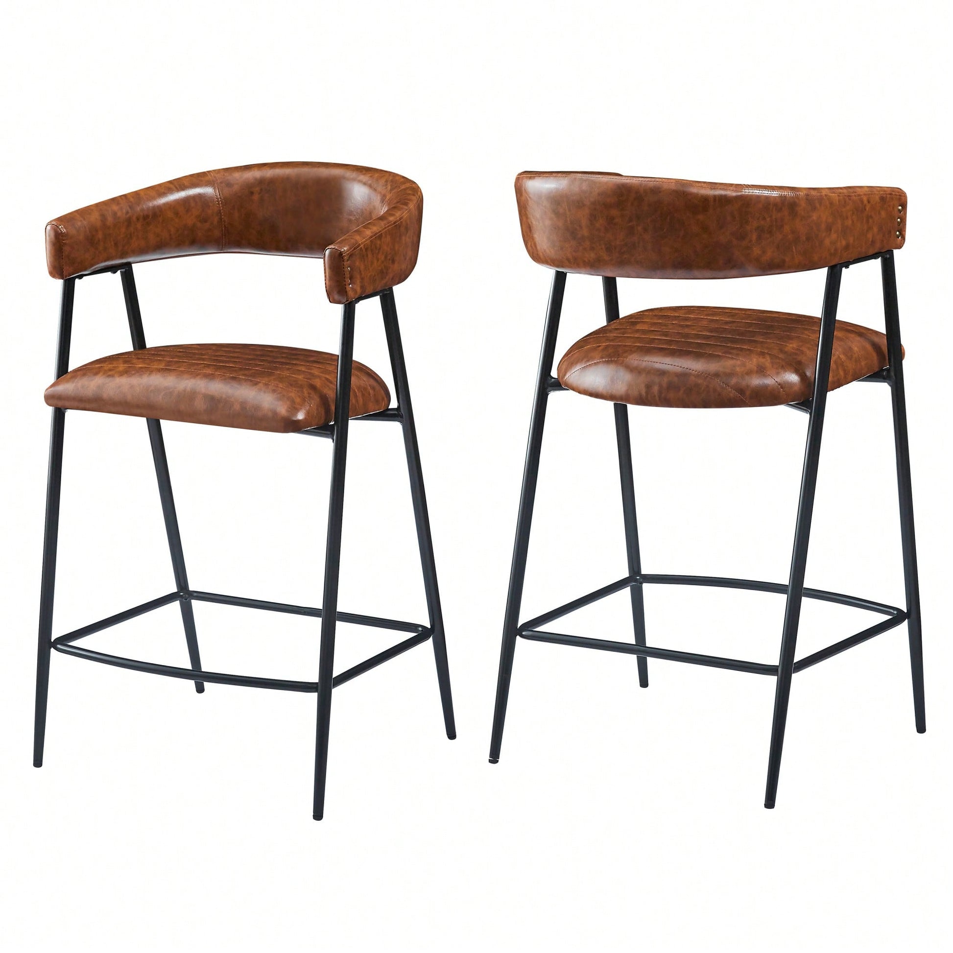 This set of 26'' counter stools features a sophisticated brown leather upholstery that adds a touch of luxury to any space. The soft cushioning and supportive backrest provide exceptional comfort, allowing you to enjoy extended seating without fatigue. Built with strong iron legs, these stools offer stability and durability, making them suitable for heavy use. Their versatile design allows them to blend seamlessly into homes, offices, cafes, or waiting areas, whether used individually or as a set. Cleaning is a breeze, as the leather surface can be wiped down easily, and the iron legs can be polished for a fresh look.