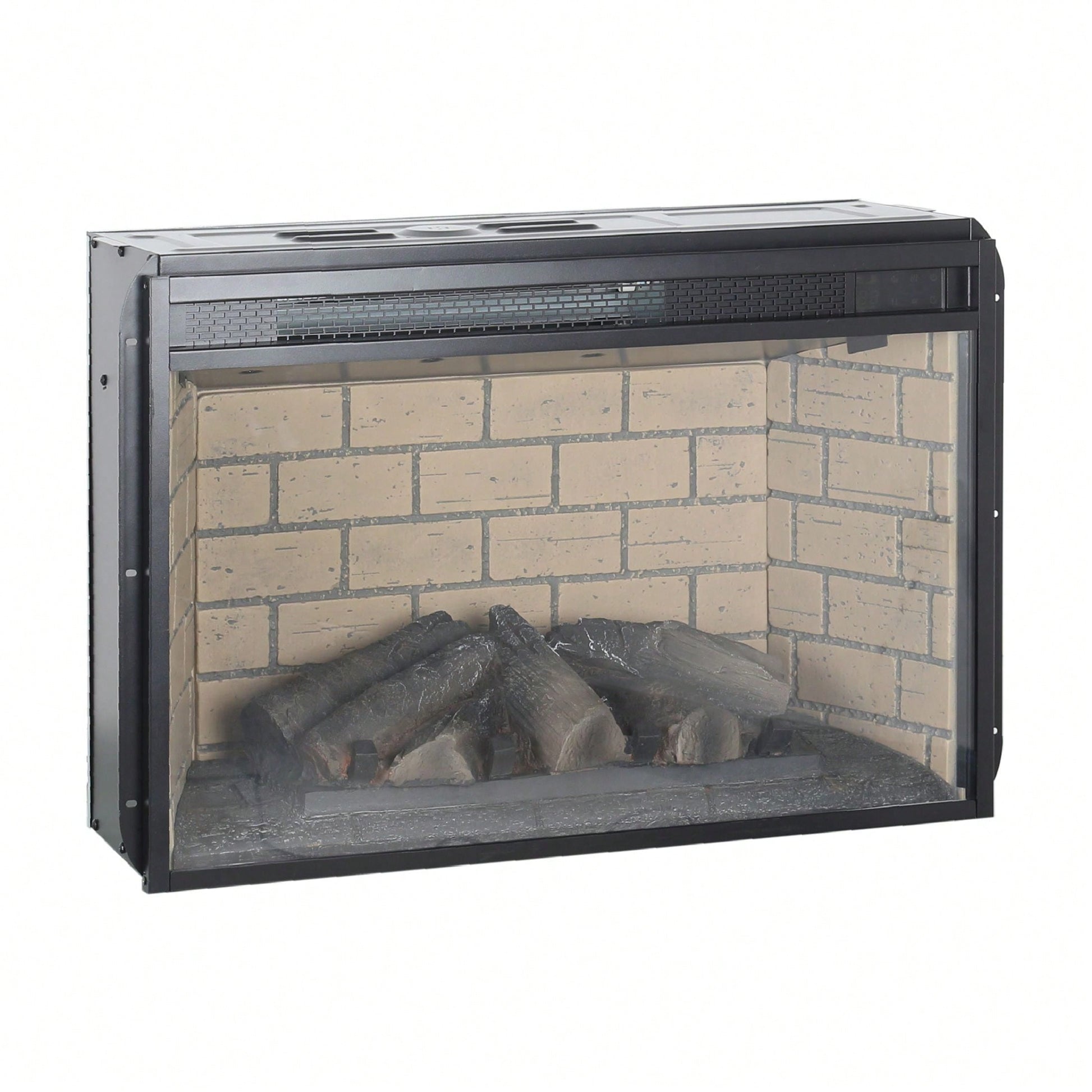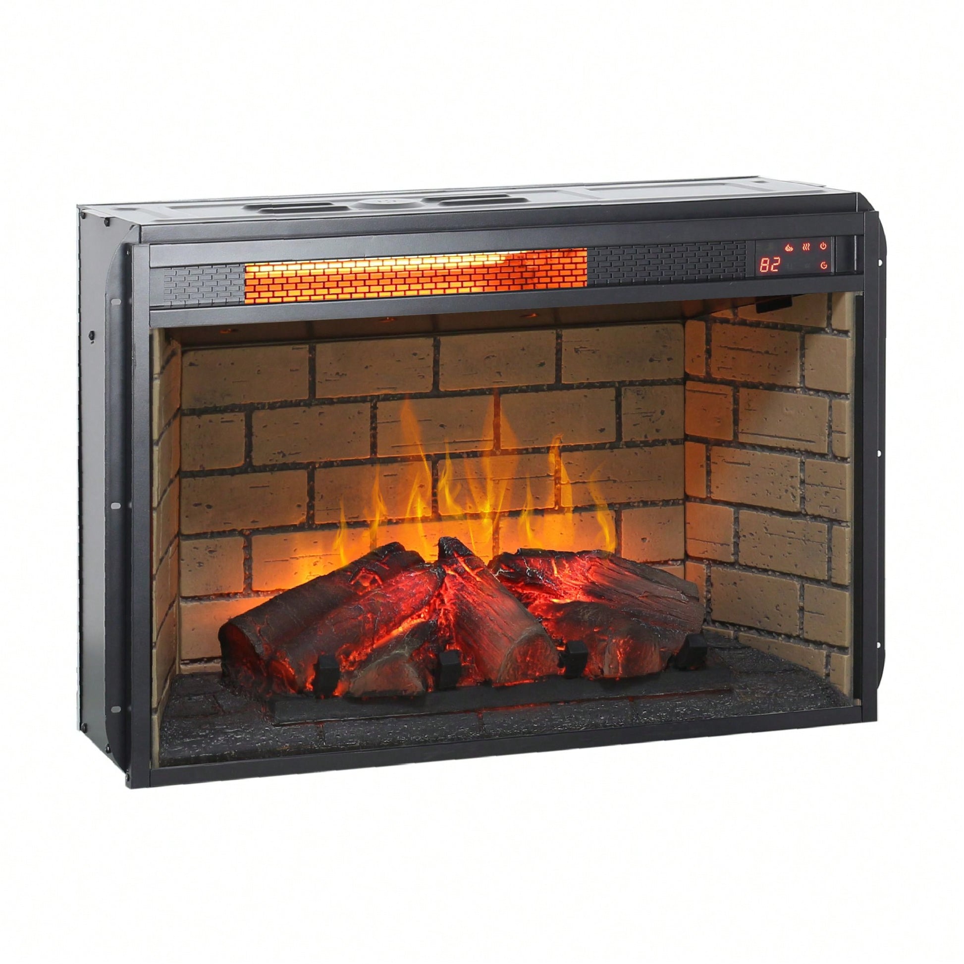 26" Infrared Quartz Heater Fireplace Insert -Woodlog Version With Brick