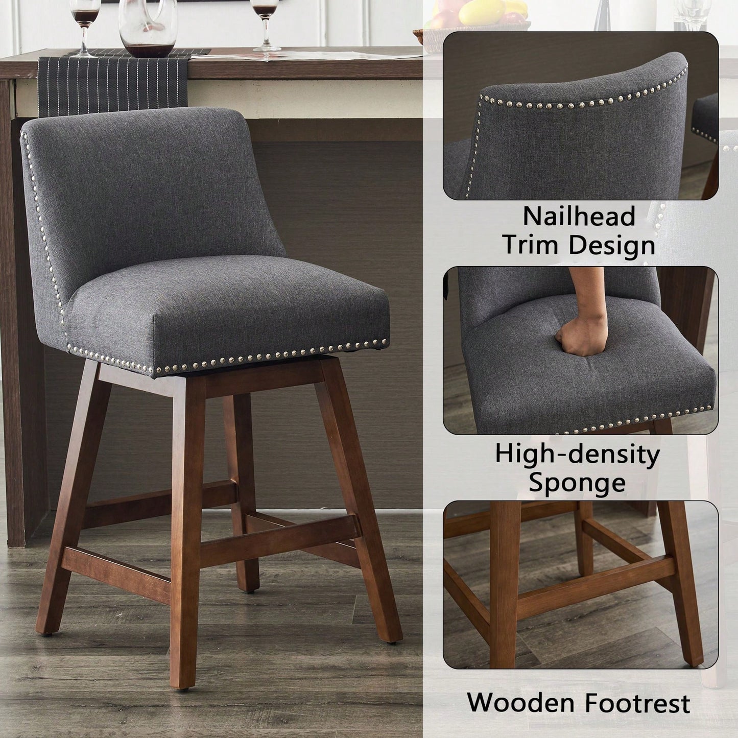 Adjustable Height Bar Stool - Leather Swivel Counter Stool With Backrest And Footrest - 21.7"-31.5" Kitchen Bar Stools - Easy Assembly