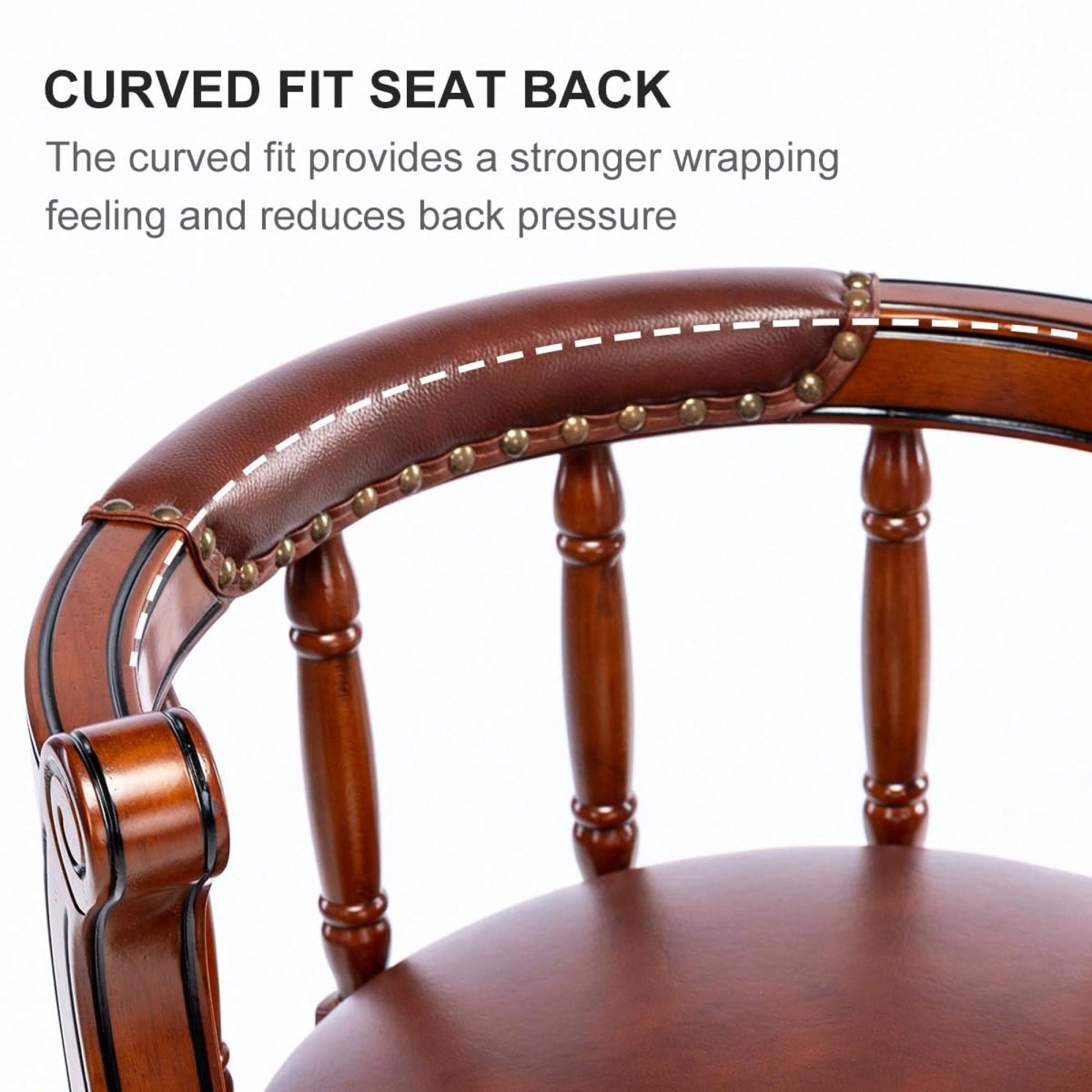 This bar stool features a 29.5-inch seat height, making it ideal for various settings such as home kitchens, restaurants, living rooms, studies, or pubs. The seat is upholstered in durable cow top leather and filled with high-density sponge for maximum comfort. The curved backrest provides additional support, while the solid wood frame ensures durability and stability. Assembly is quick and straightforward, taking only about 10 minutes with the provided instructions and tools.