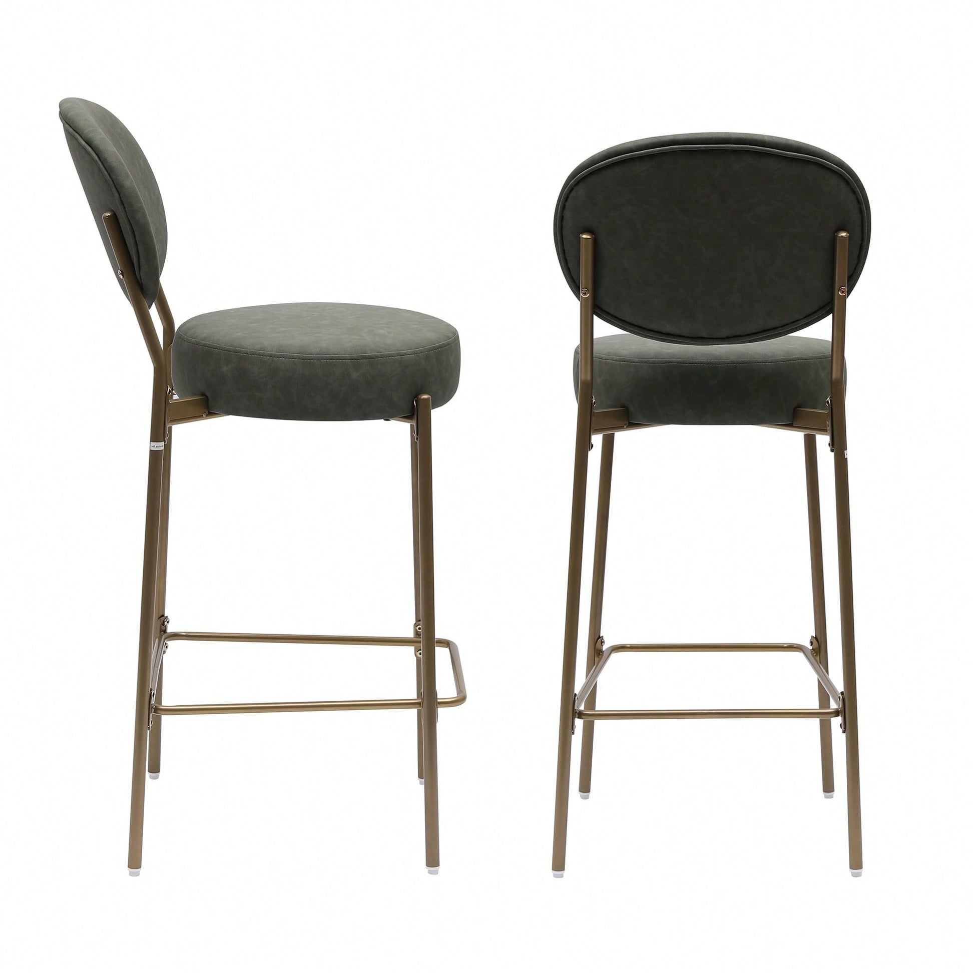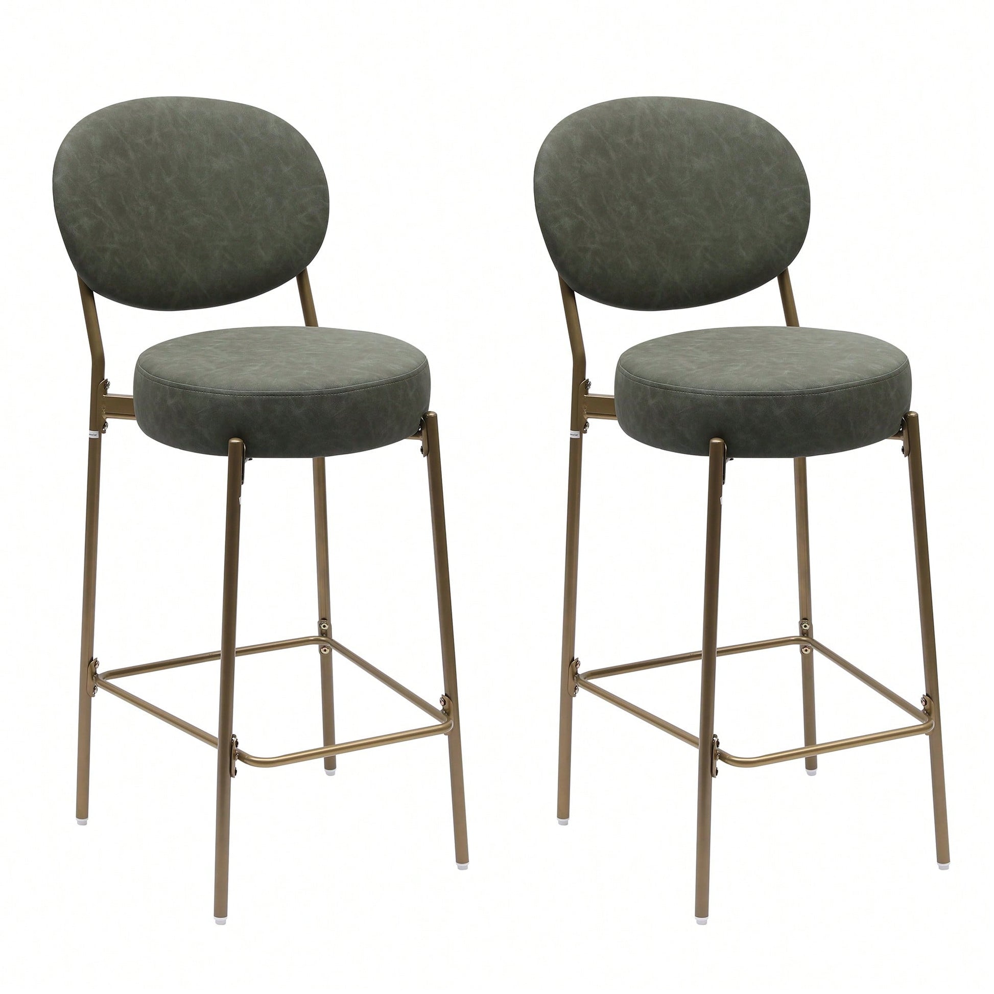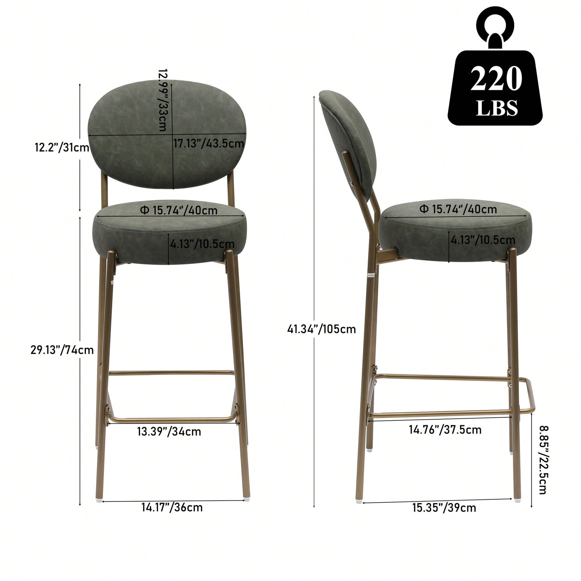 Experience luxurious comfort with these upholstered bar stools featuring a contemporary design. The soft PU leather and ergonomic structure ensure a relaxing seating experience while alleviating waist pressure. The distinctive oval backrest and armrests provide both protection and style, making these stools a perfect addition to any setting. Built with a robust metal frame and equipped with anti-slip pads, these stools guarantee stability and safety for users. Ideal for various environments such as homes, restaurants, offices, or hotels, they offer a versatile and elegant seating solution. Assembly is straightforward, taking only a short time with the provided instructions.