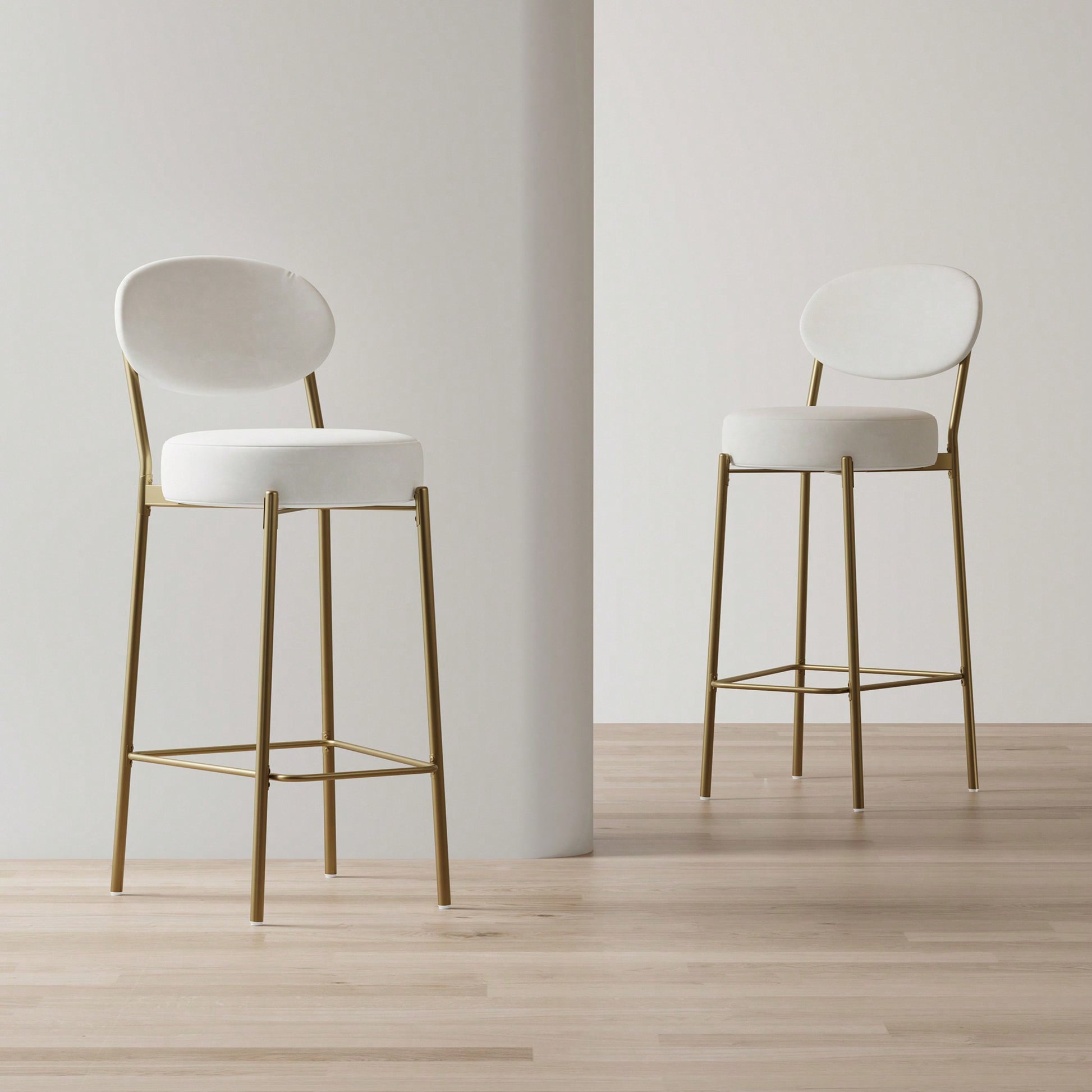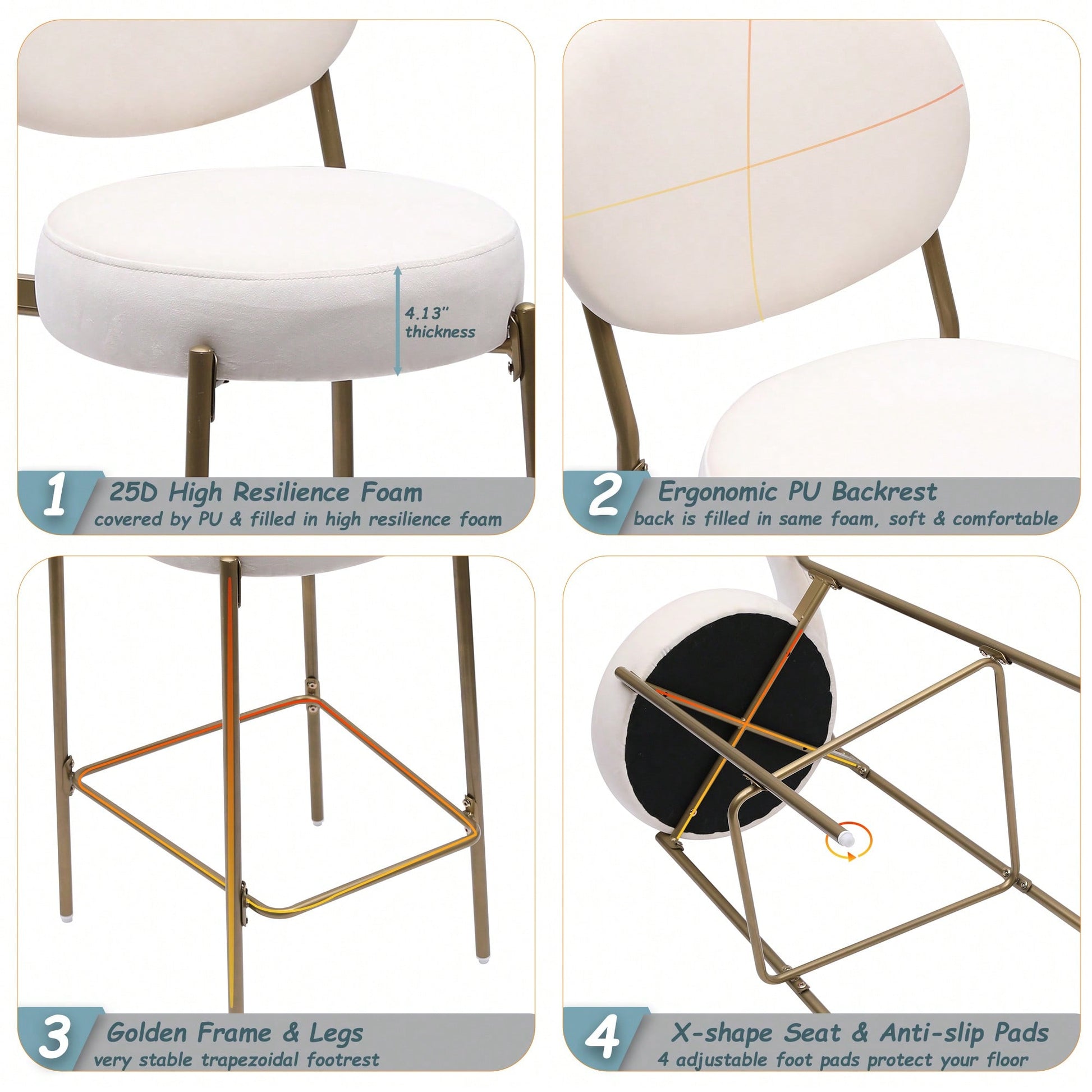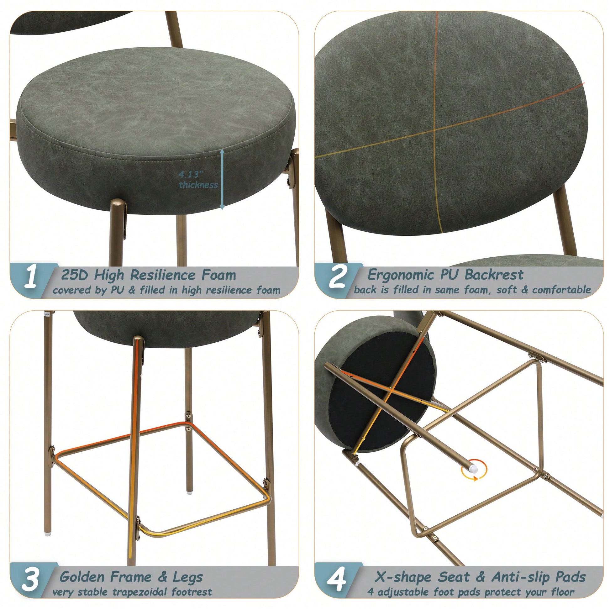 Experience luxurious comfort with these upholstered bar stools featuring a contemporary design. The soft PU leather and ergonomic structure ensure a relaxing seating experience while alleviating waist pressure. The distinctive oval backrest and armrests provide both protection and style, making these stools a perfect addition to any setting. Built with a robust metal frame and equipped with anti-slip pads, these stools guarantee stability and safety for users. Ideal for various environments such as homes, restaurants, offices, or hotels, they offer a versatile and elegant seating solution. Assembly is straightforward, taking only a short time with the provided instructions.
